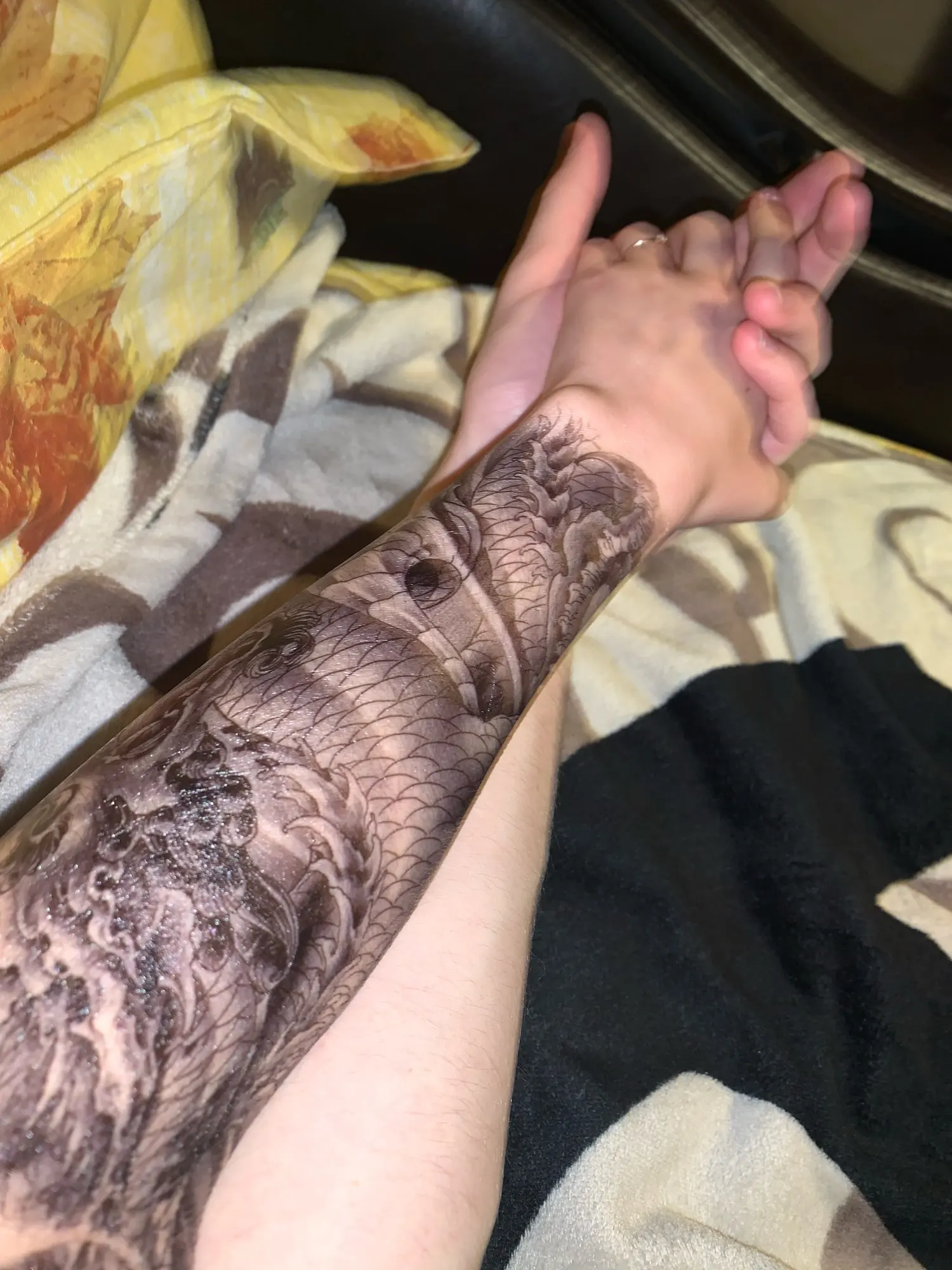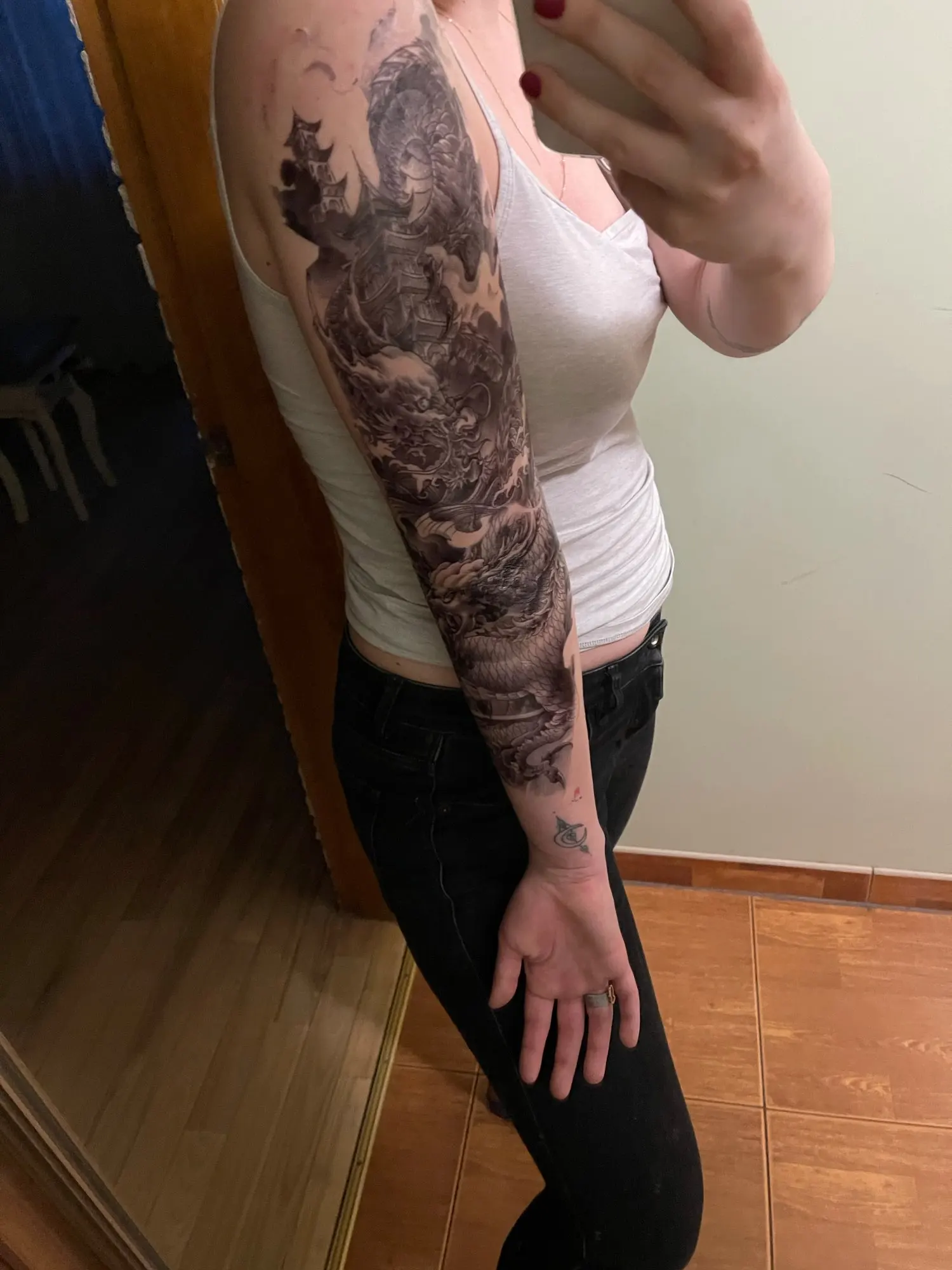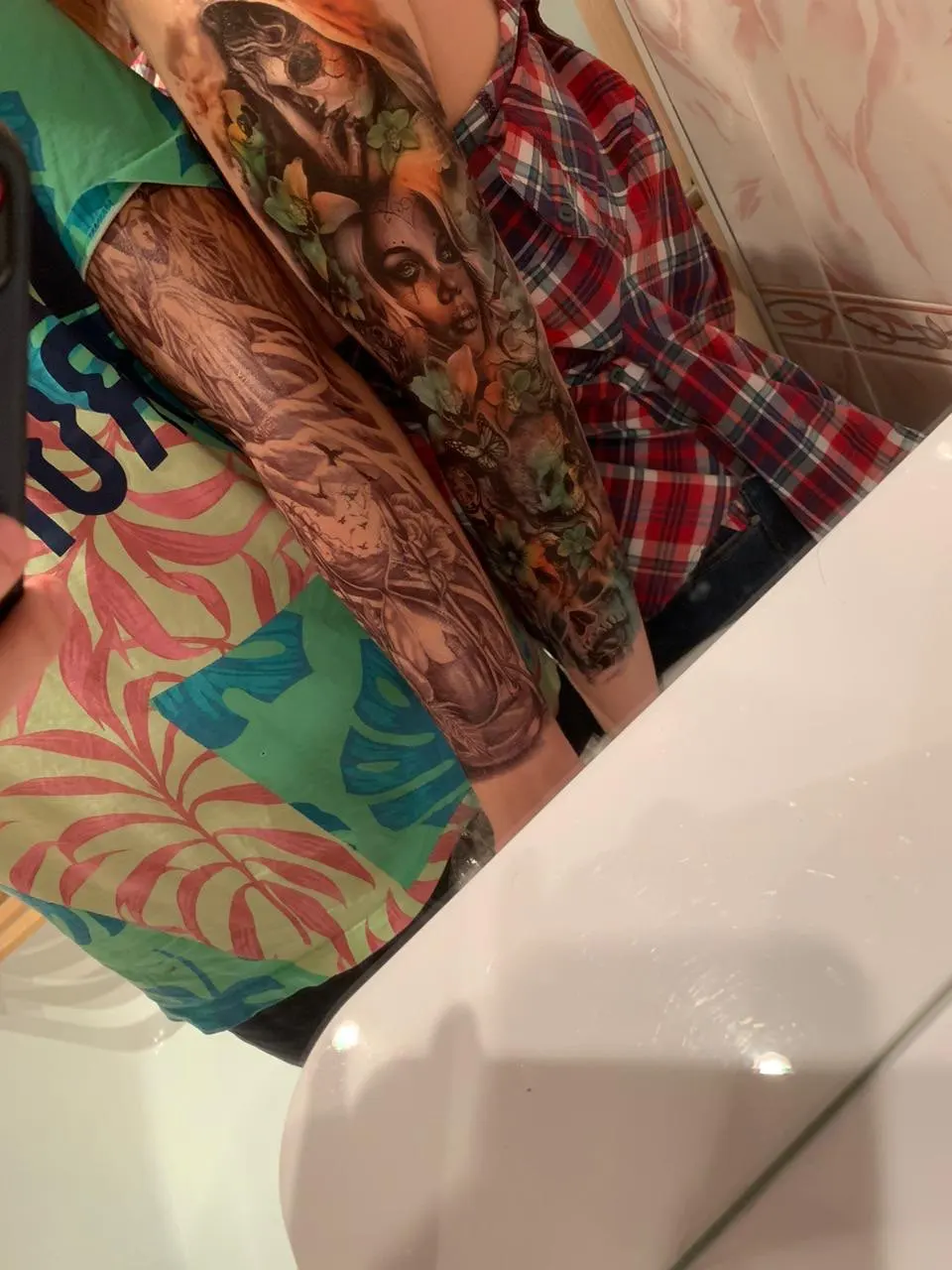 Отличный тату-рукав Пришел быстро Держится около 1,5 недель, затем начинает стираться потихоньку
