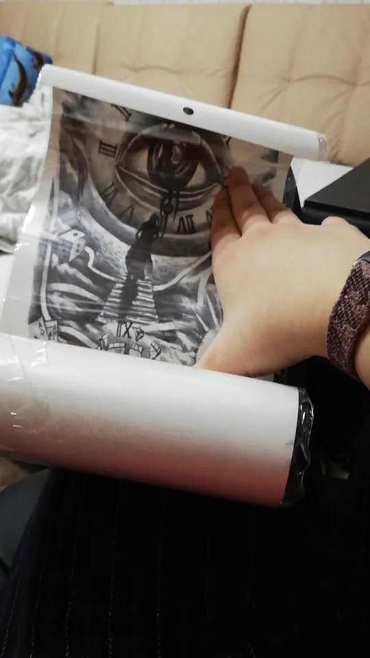 Пришла татуировка, упакована отлично(намотана на специальный валик), пришло быстро, не повреждено, будем пробовать в действии:)
