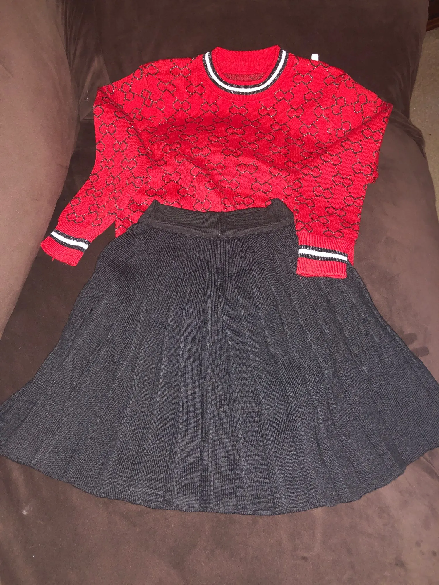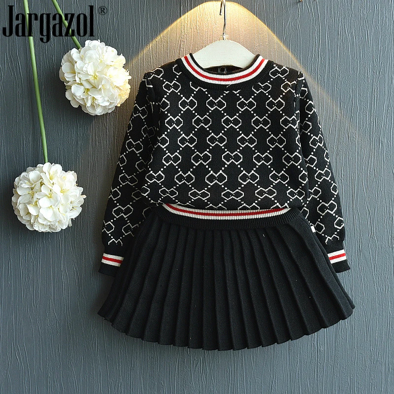 Комплект зимней одежды для девочек 2022 года, свитер с длинным рукавом и юбка, костюм из 2 предметов, весенняя одежда для детей, одежда для девочек