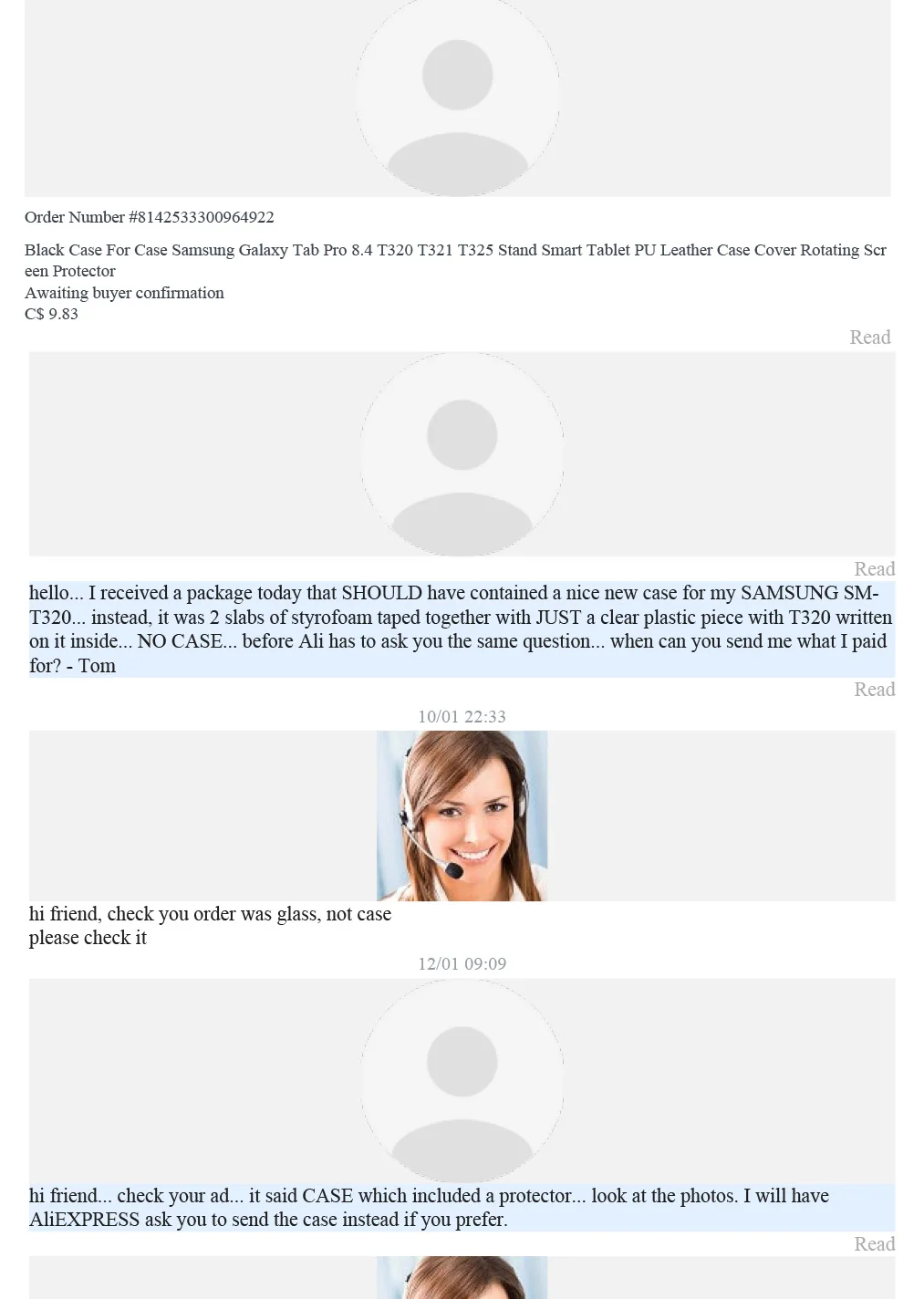 Худший онлайн-опыт. Ищете чехол для моего планшета. Найдите чехол. Закажите чехол. Получите пластиковый экран. Продавец говорит, что это то, что я заказал... Что я сделал; t. Обидел меня вместо того, чтобы признавать, что его реклама рекламирует чехол, а не экран. Выгляжу глубже и глубже, я наконец-то найти его трюк. Greniana затягивает экран ad в чехол ad. AliExpress договорился со мной и вернул мне $10. Спасибо AliExpress. Greliana Outlet Store отправляет мне сообщение, в котором я надеюсь, что мой экран и планшет сломаются.