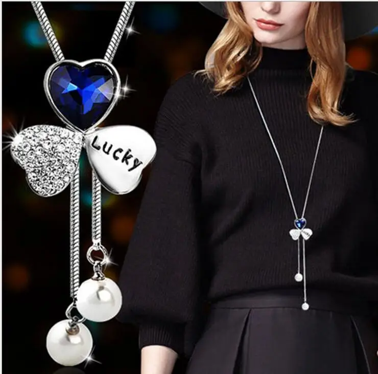 LWMMD винтажные ожерелья, ювелирные изделия из кристаллов, ожерелье с листьями клевера, подвеска, длинный свитер, ожерелье для женщин, ожерелье на заказ