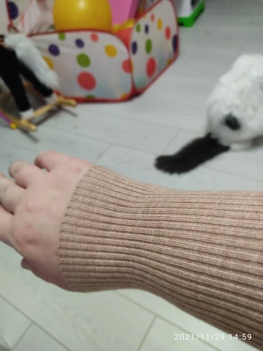 спасибо продавцу за такую классную водолазку. ткань очень мягкая и приятная на ощупь. рукава не короткие. я 44 размера, 170 высотой, размер м отлично сел ) цвет приятный, нежный, смотрится не дешево. все швы ровные. рекомендую продавца. заказ шёл очень быстро, пришел за 2 недели. трек номер отслеживался. ещё хочу купить пару оттенков)