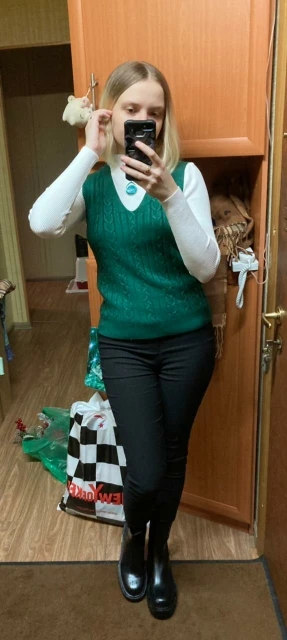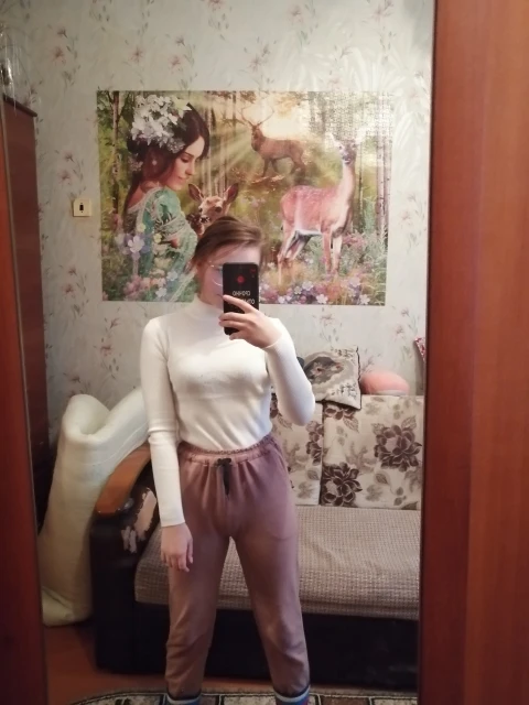 Доставка в постамат за 2 недели, трек отслеживался. Заказываю у этого продавца уже 6 раз в течении 3 лет. У нас есть все цвета, носим с дочерью вместе. Я ношу 42-44 размер, рост 160, дочь 12 лет/152 рост тоже подходит размер S. Брала на подарки маме и сестре. Базовая водолазка, после бережной машинной стирки служит долго)) за 600 рублей хорошо. Ошиблась с цветом в этом заказе, брала для мамы, продавец заменил на нужный цвет, спасибо ему большое!