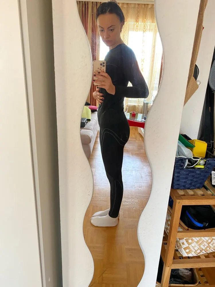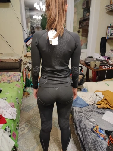 Крутое термобельё! Ничего не торчит, сшито аккуратно. Швы все плоские, ничего не давит. На рост 160 село хорошо. Тем, кто выше, может быть коротко. Со своей задачей справляется хорошо: немного греет и отводит влагу. Выглядит бомбезно. Единственное: линия под грудью съедет вверх, если у вас есть какая-нибудь мало-мальская грудь. Вид не сильно портит, но выглядит странновато