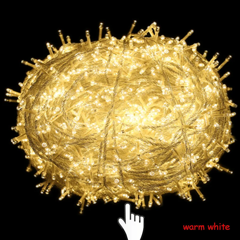 Светодиодный светильник, 220 В переменного тока, 10 м, 20 м, 30 м, 50 м, 100 м, сказочные гирлянды, лампы для свадьбы, Рождества, сада, лестницы, украшения, наружные струны