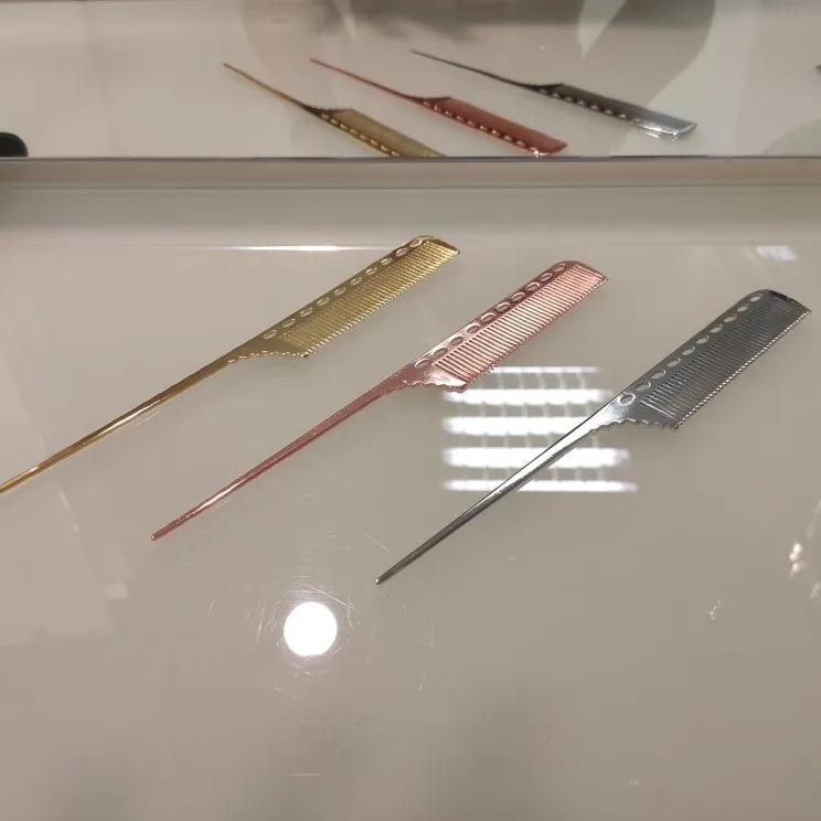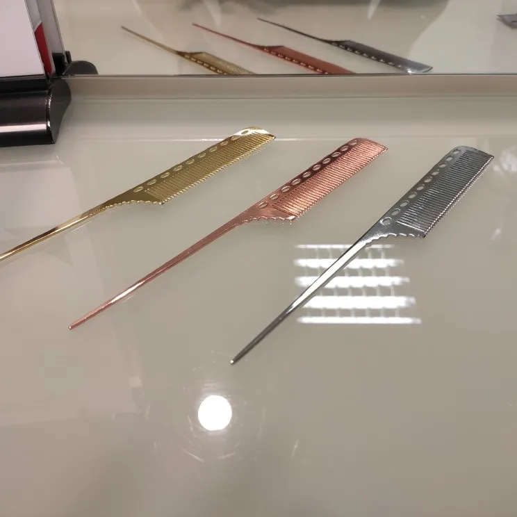 Расческа для стрижки волос металлическая, розовое золото, 12 шт.