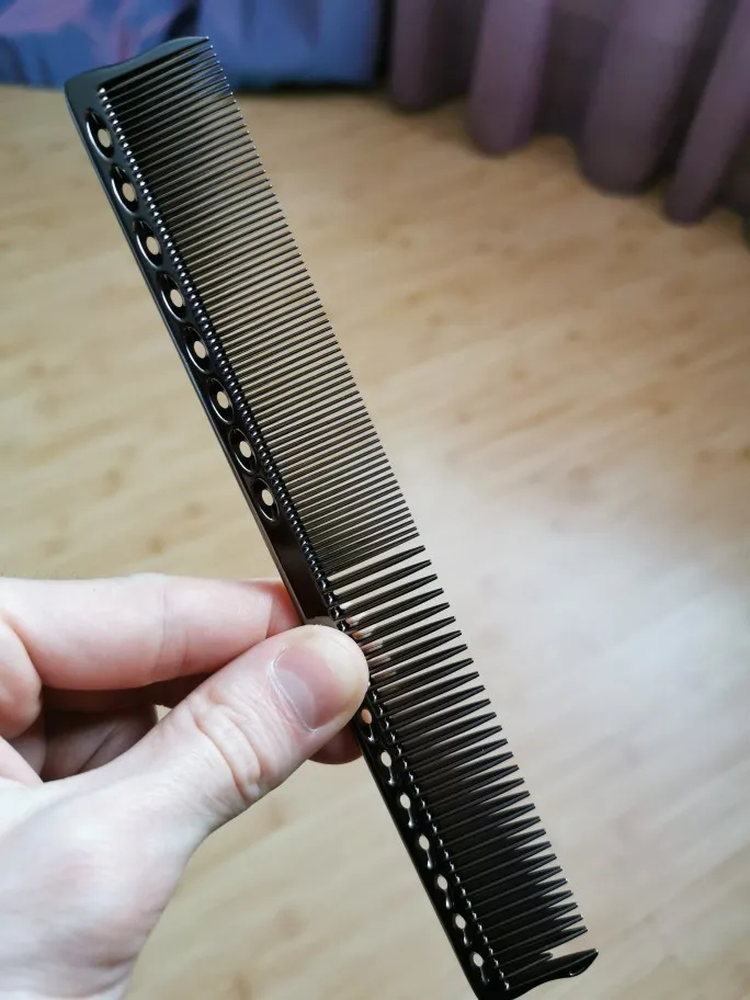 Расческа толстая. Зубчики кривые. Между зубчиками черный клей. Отправка долгая. За доставку платили , так , что доставка быстрая. Покупкой не довольна.