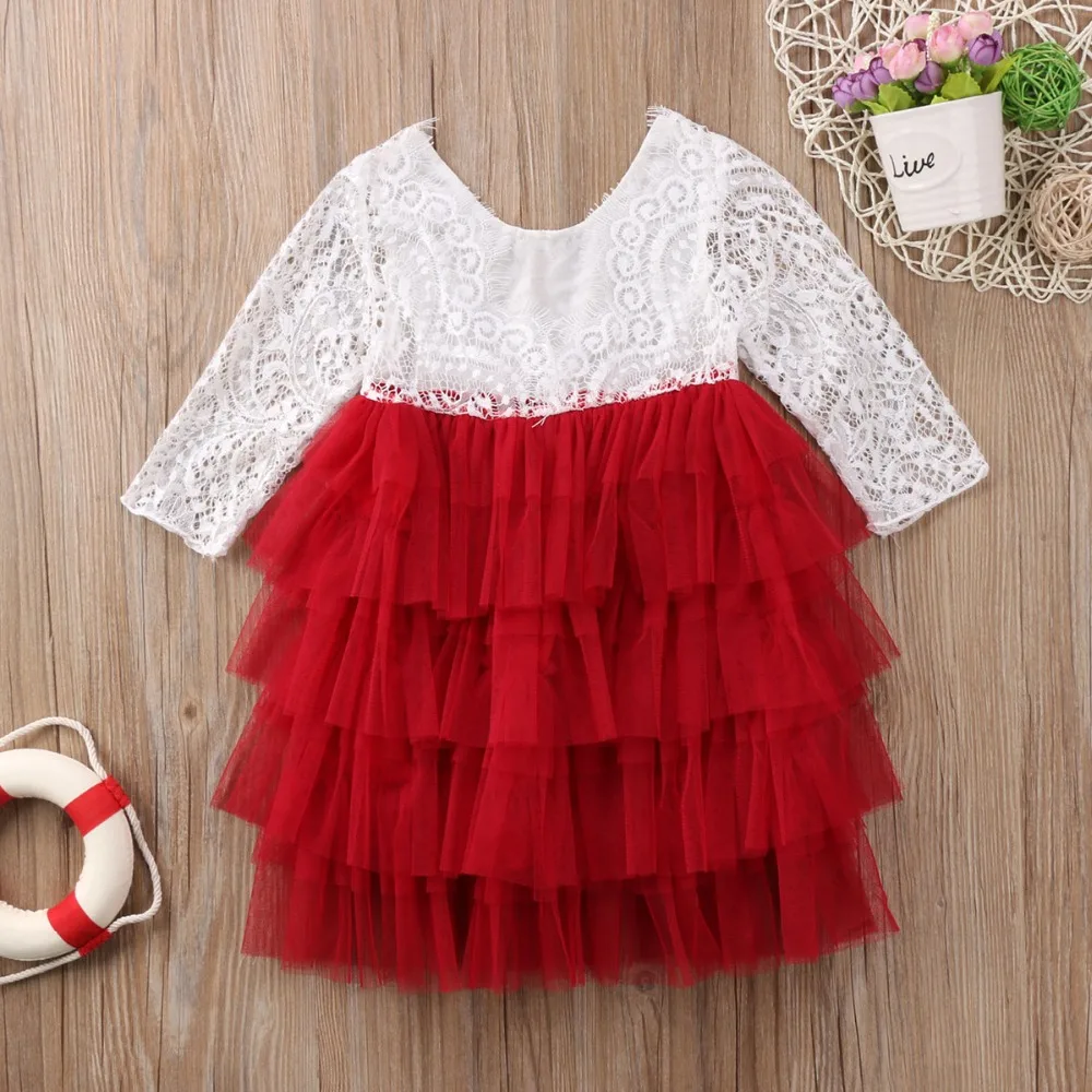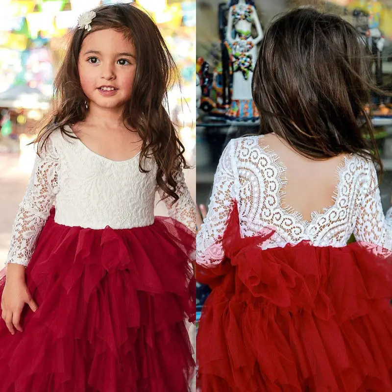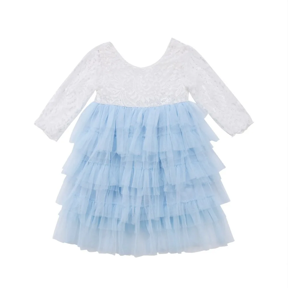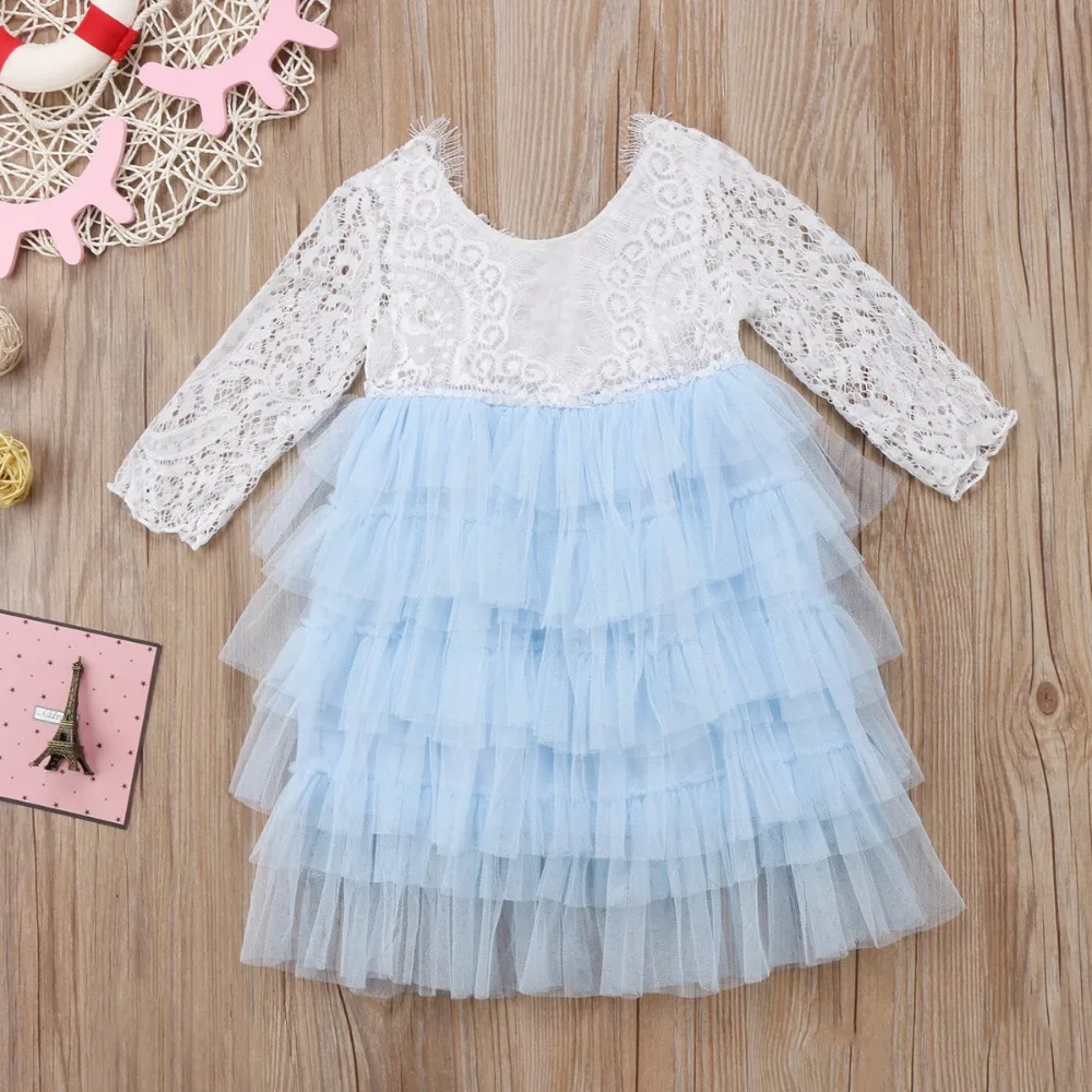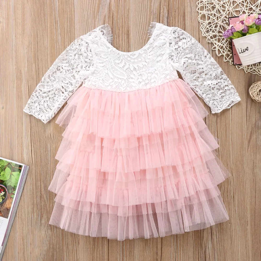 Детское платье принцессы для вечерние ринки, свадьбы, детская одежда, кружевное многослойное платье-пачка с длинным рукавом, Детские Летние Осенние платья