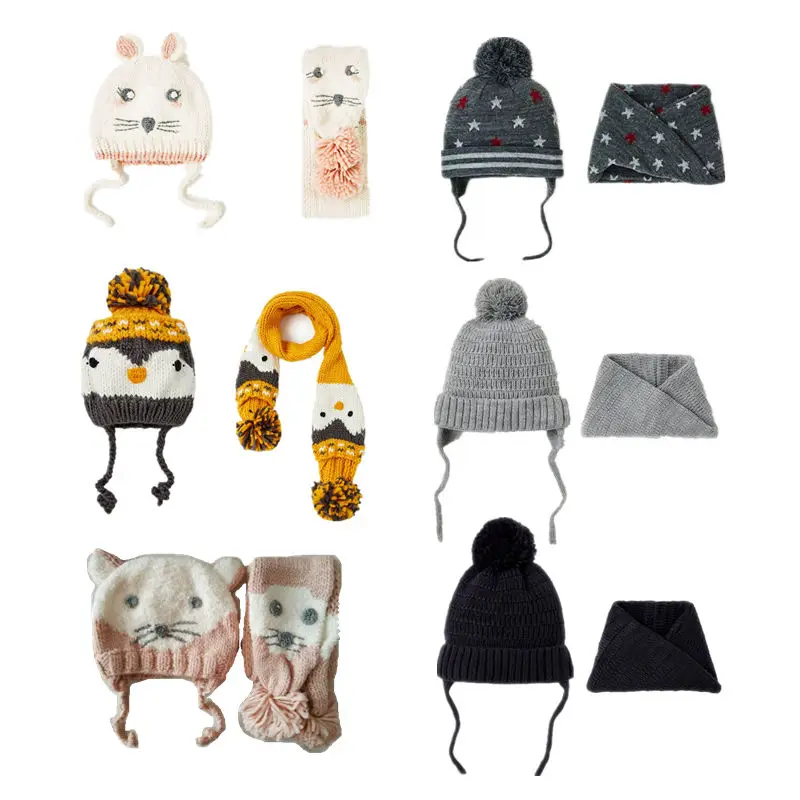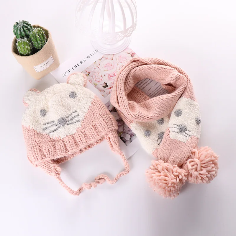 Шапка Вязаная Детская, зимняя, с помпоном, 2 шт.компл.