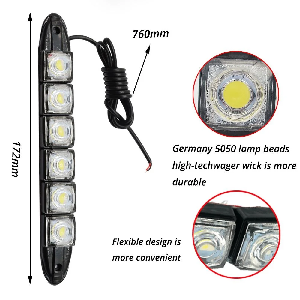 1X 6 светодиодный s Авто декоративный гибкий светодиодный полосы высокое Мощность 12V Авто дневные ходовые огни светильник светодиодный полосы светильник белый или черный корпус