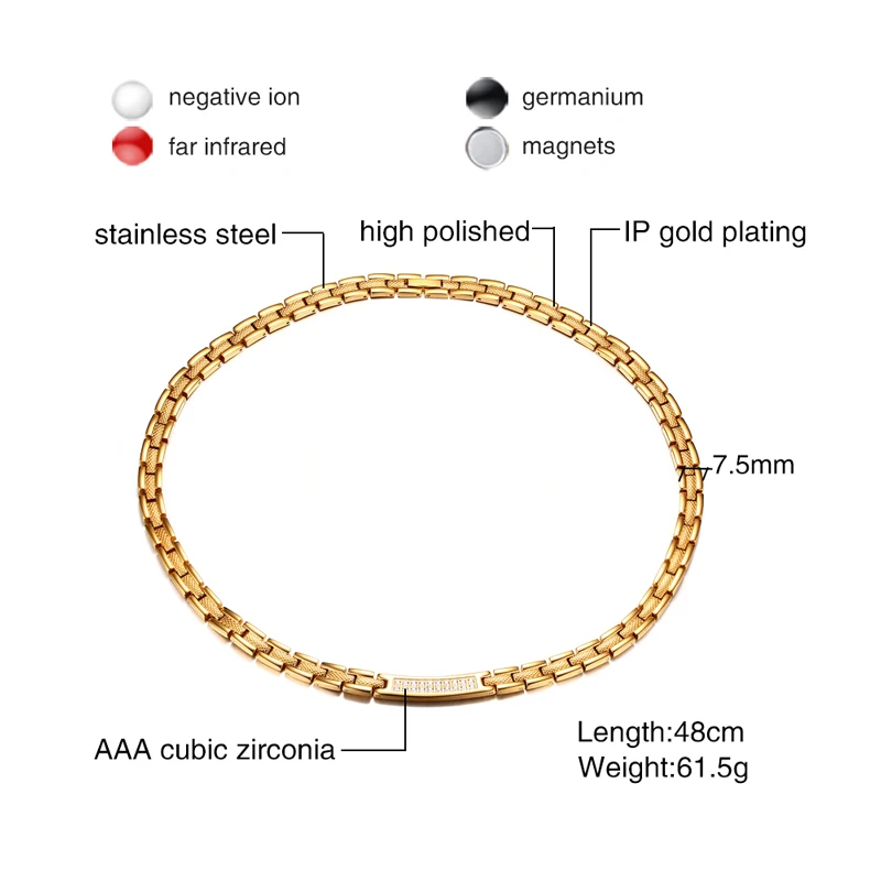Женское колье-чокер с кристаллами, ожерелье из нержавеющей стали с магнитом германия, энергия здоровья, цвет золото