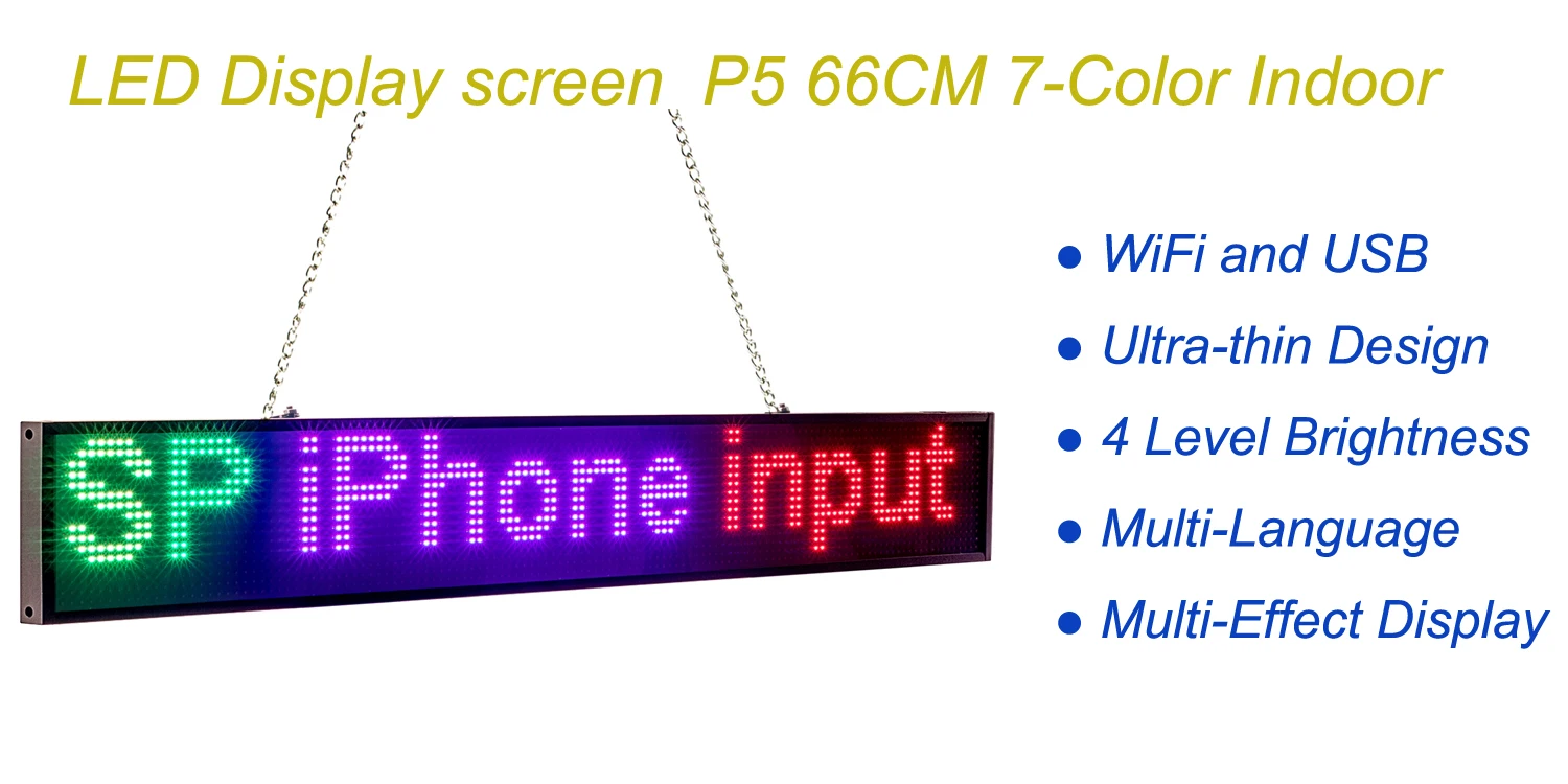 66 см светодиодный экран для вывесок P5 RGB полноцветный 16*128 пикселей телефон WiFi или USB Программируемый прокручивающийся текст СВЕТОДИОДНАЯ Рекламная Панель