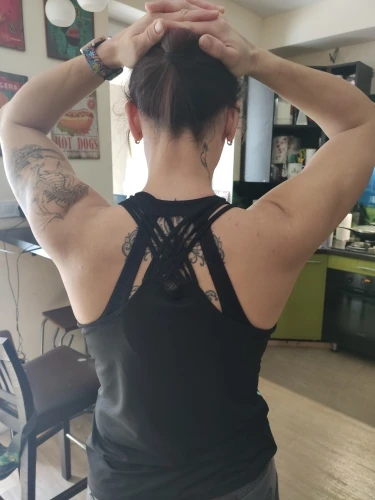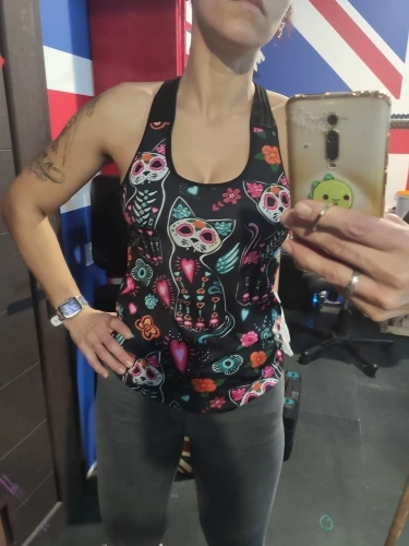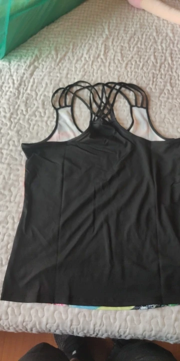 Очень симпатичная майка, синтетика, можно йогой заниматься, быстро сохнет! Спасибо продавцу ещё подарочек положил!