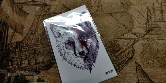 Я действительно хочу получить татуировку на моей руке, поэтому я купил наклейку, просто чтобы увидеть, нравится ли мне салфетки. Наклейка очень дешевая и мусорная, но я думаю, что она делает свою работу. Наденьте крем для рук, чтобы слегка избавиться от блеска