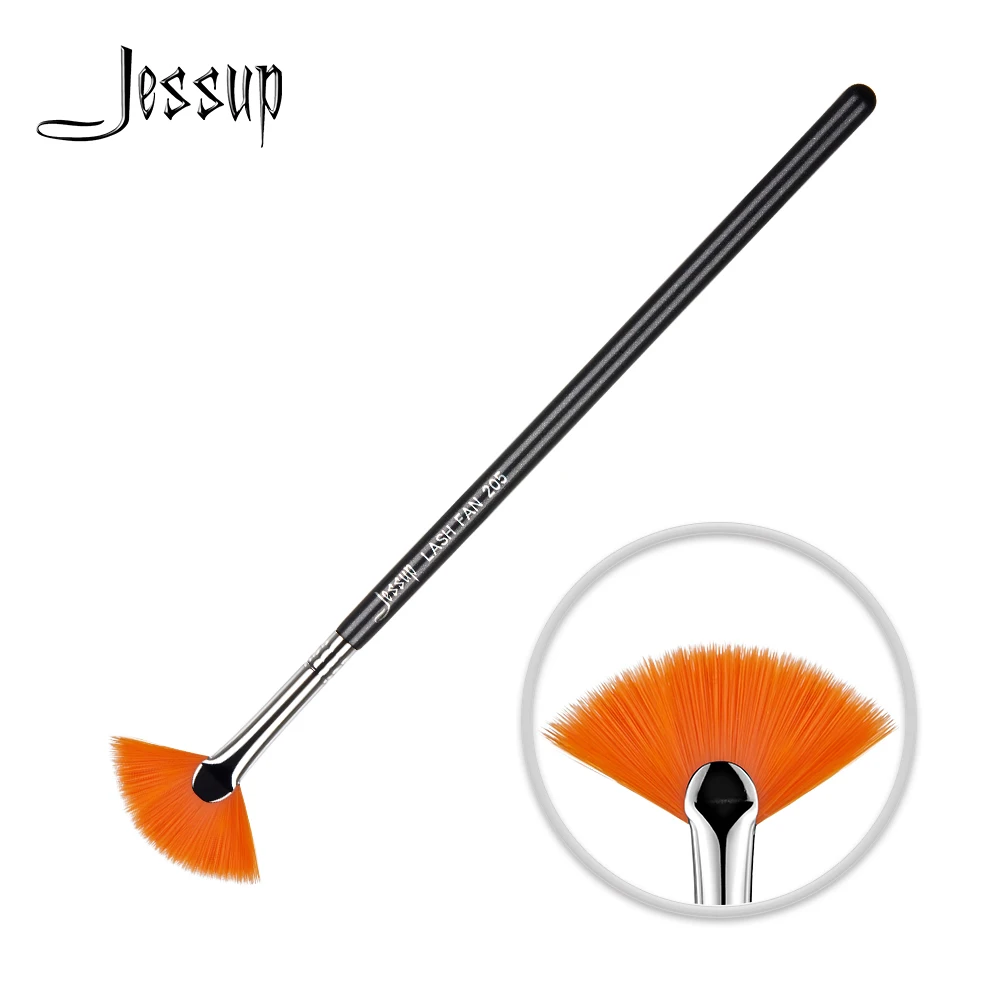 Jessup Одиночная Кисть для макияжа, веер для ресниц, высокое качество, профессиональные волоконные волосы, деревянная ручка, черно-серебристая кисть для глаз, 1 шт.-205