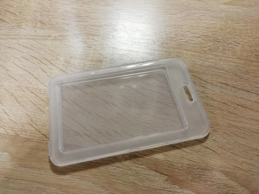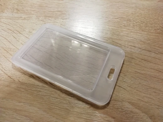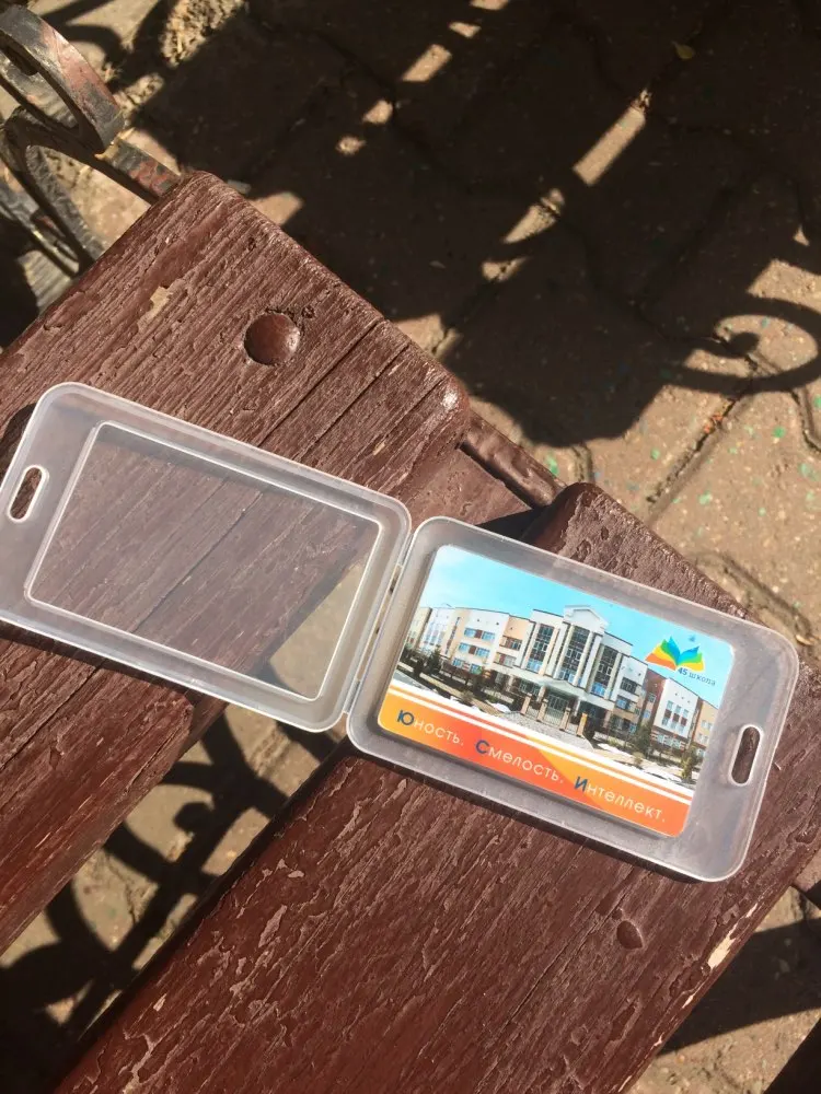 Плотный пластик, хорошо защелкивается. Можно положить две пластиковые карты. Есть отверстие под ремешок или кольцо ( ключи, брелок). Идеально для школьников. Сам положил тройку и пропуск. Рекомендую.