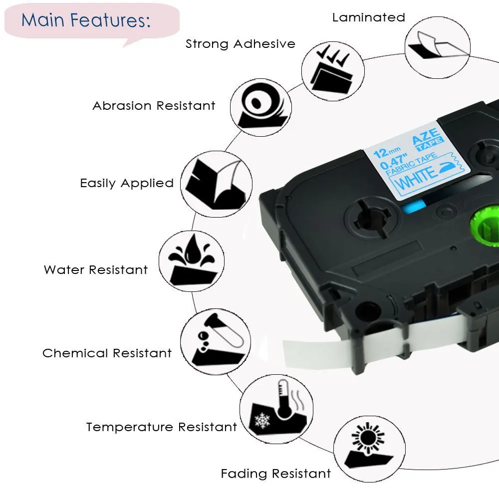 Совместим с Brother P touch , ткань, железо на ленте для этикеток, TZeFA3, 12 мм, белые на синих принтерах для этикеток