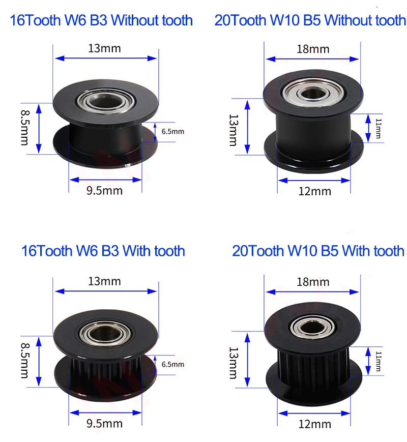 Натяжной шкив KINGROON GT2, 2 шт., алюминиевый шкив для 3D-принтера 2GT, 16 20 зубьев, отверстие 3 мм, 5 мм, ширина 6, 10