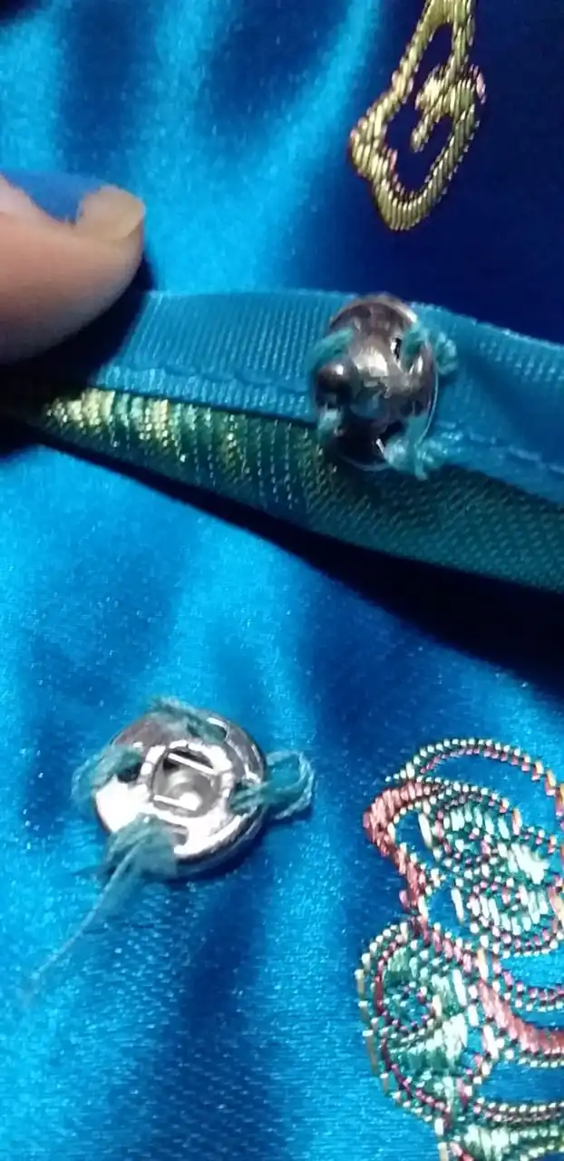 Платье нереально красивое! Ткань плотная, запаха нет, клёпки плохо пришиты и постоянно расстёгиваются, но это не проблема вовсе...заменю на крючки. За 750 руб. отличный восточный вариант! На свой р.44 взяла L - идеально село. Доставка за 2 недели в Воогоград.