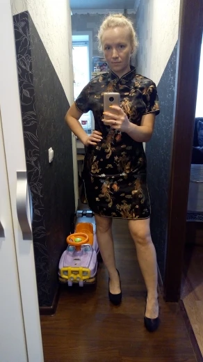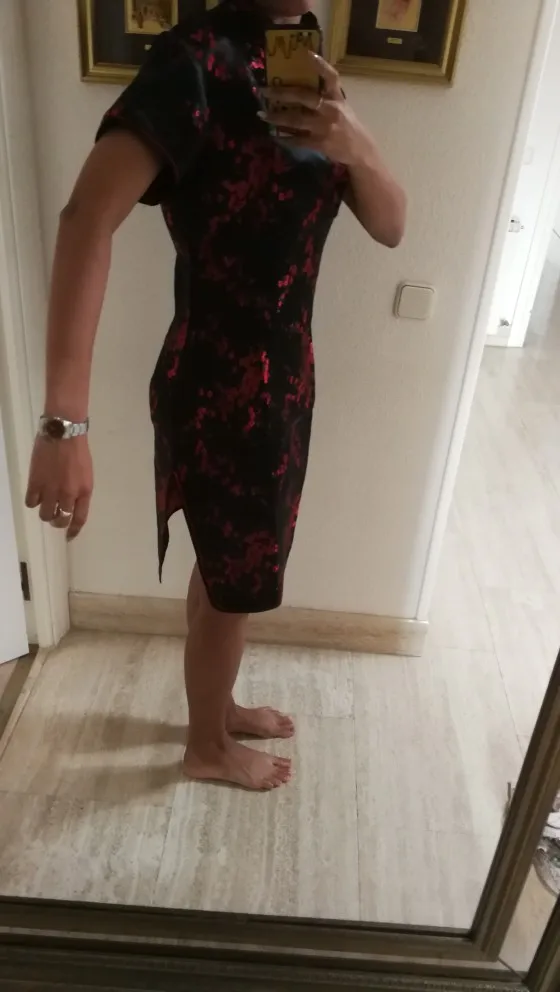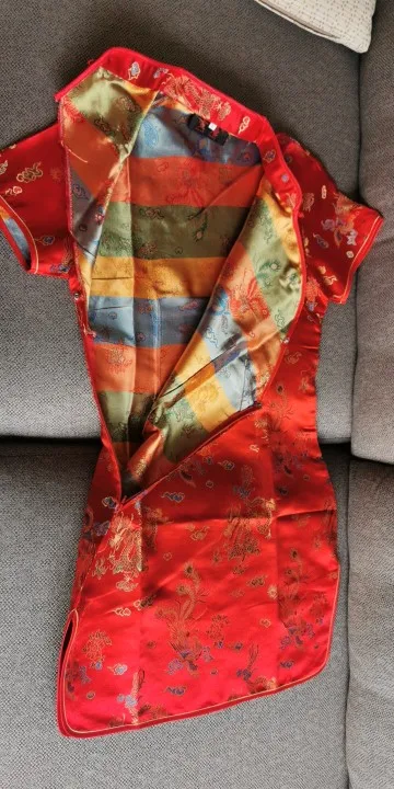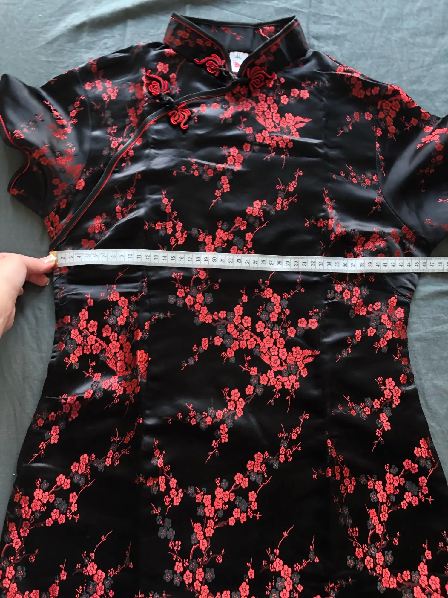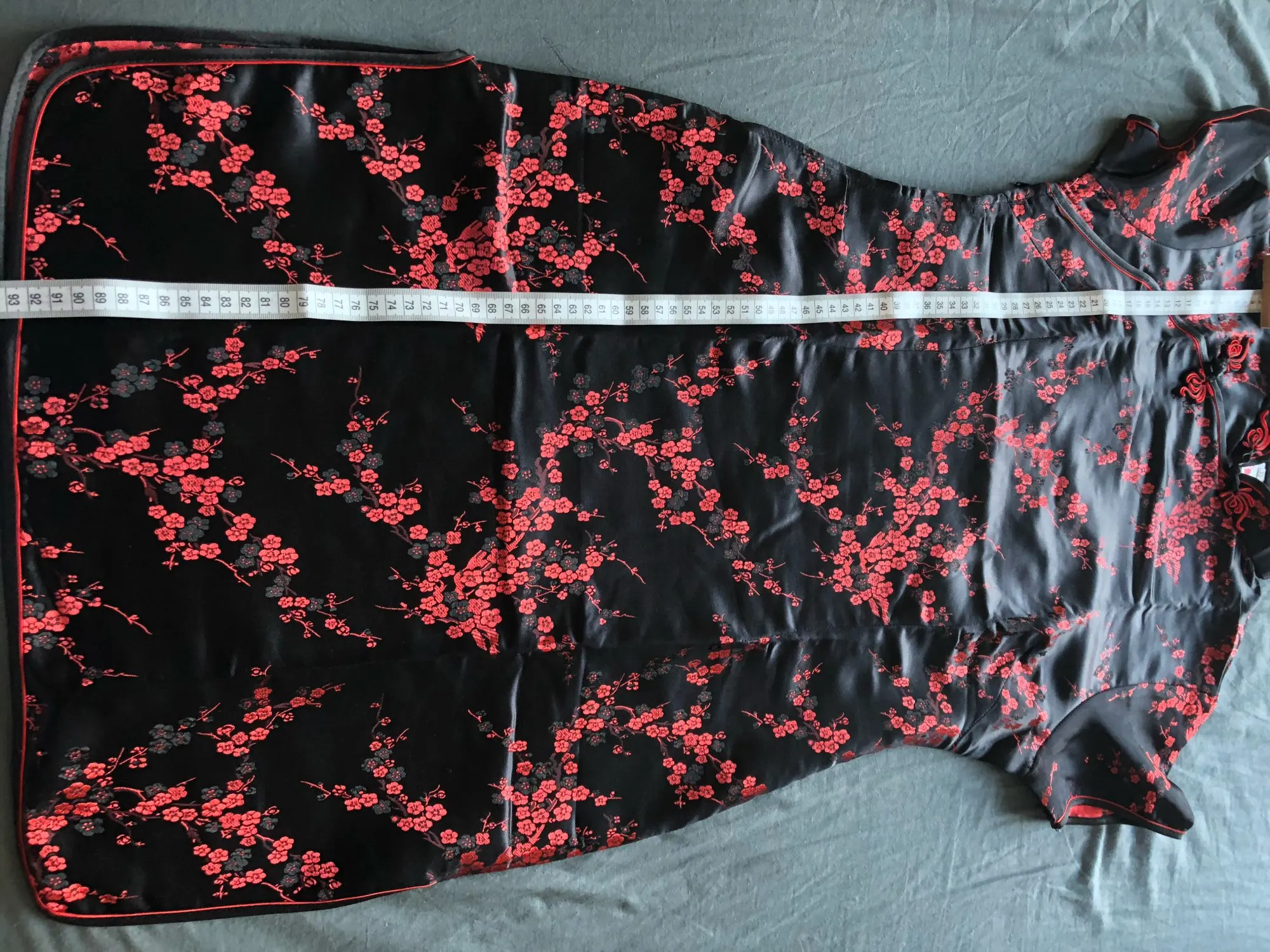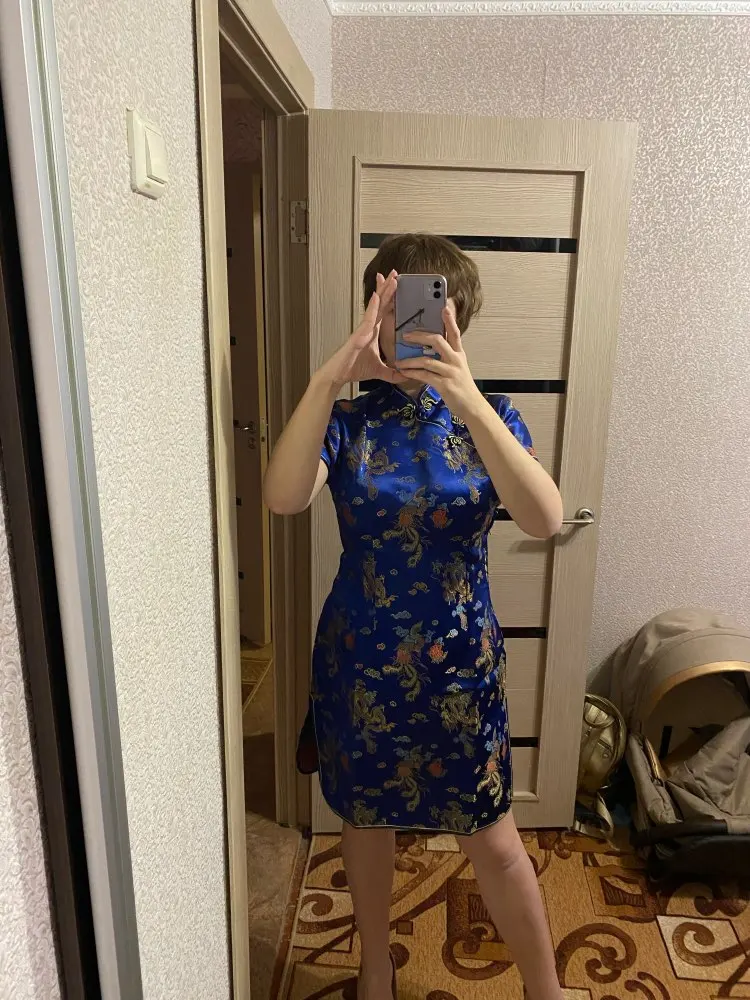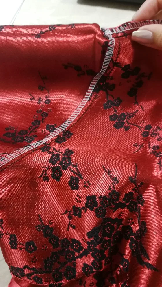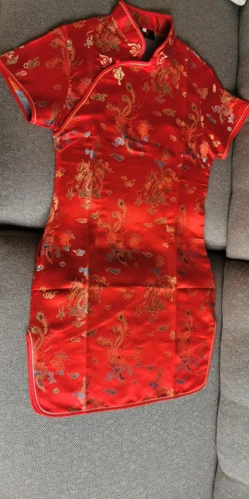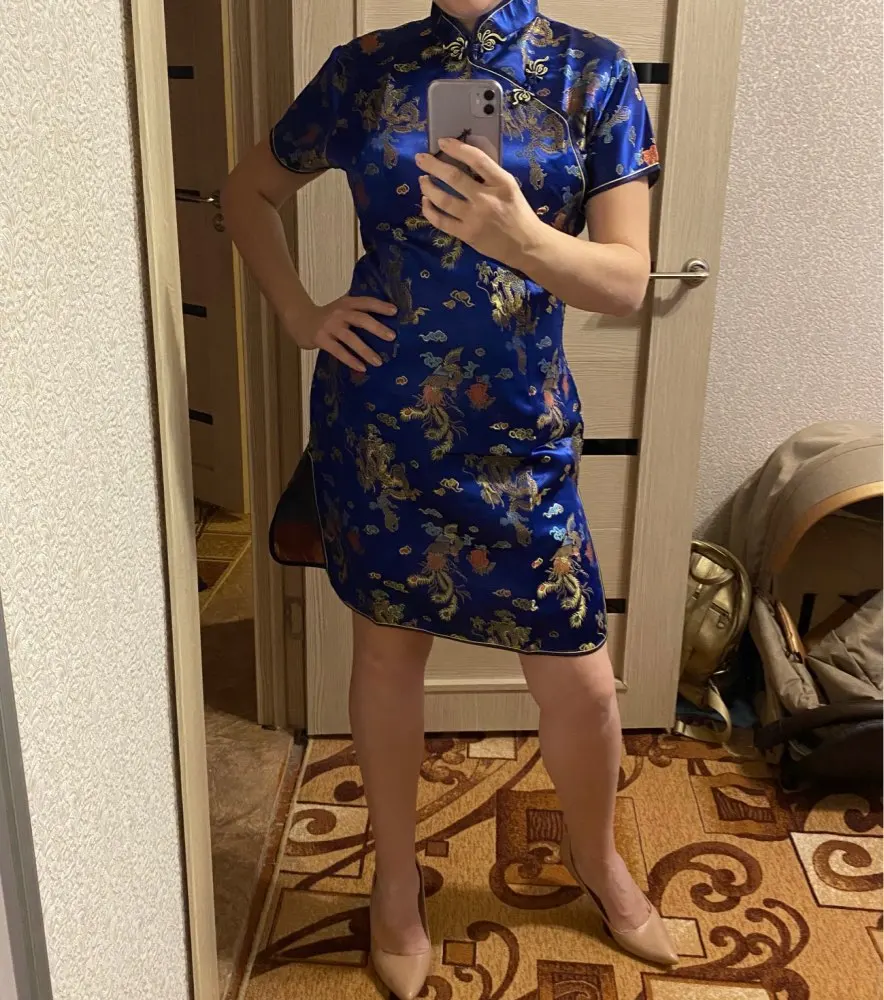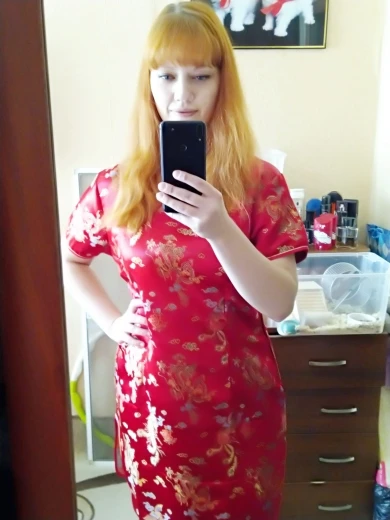 По размеру на мои ОГ 88 ОБ 94 ОТ 78 подошёл размер L (беру обычно M). При этом в талии и в бёдрах все село хорошо, а вот на спине скорее всего выкройку неправильно сшили (торчит материал). Видно что пришивали замок, кнопочки на быструю руку. Но смотрится хорошо, и за такую цену очень круто(721р) Выбрала к китайскому нг именно красный ципао. Доставка меньше 20 дней