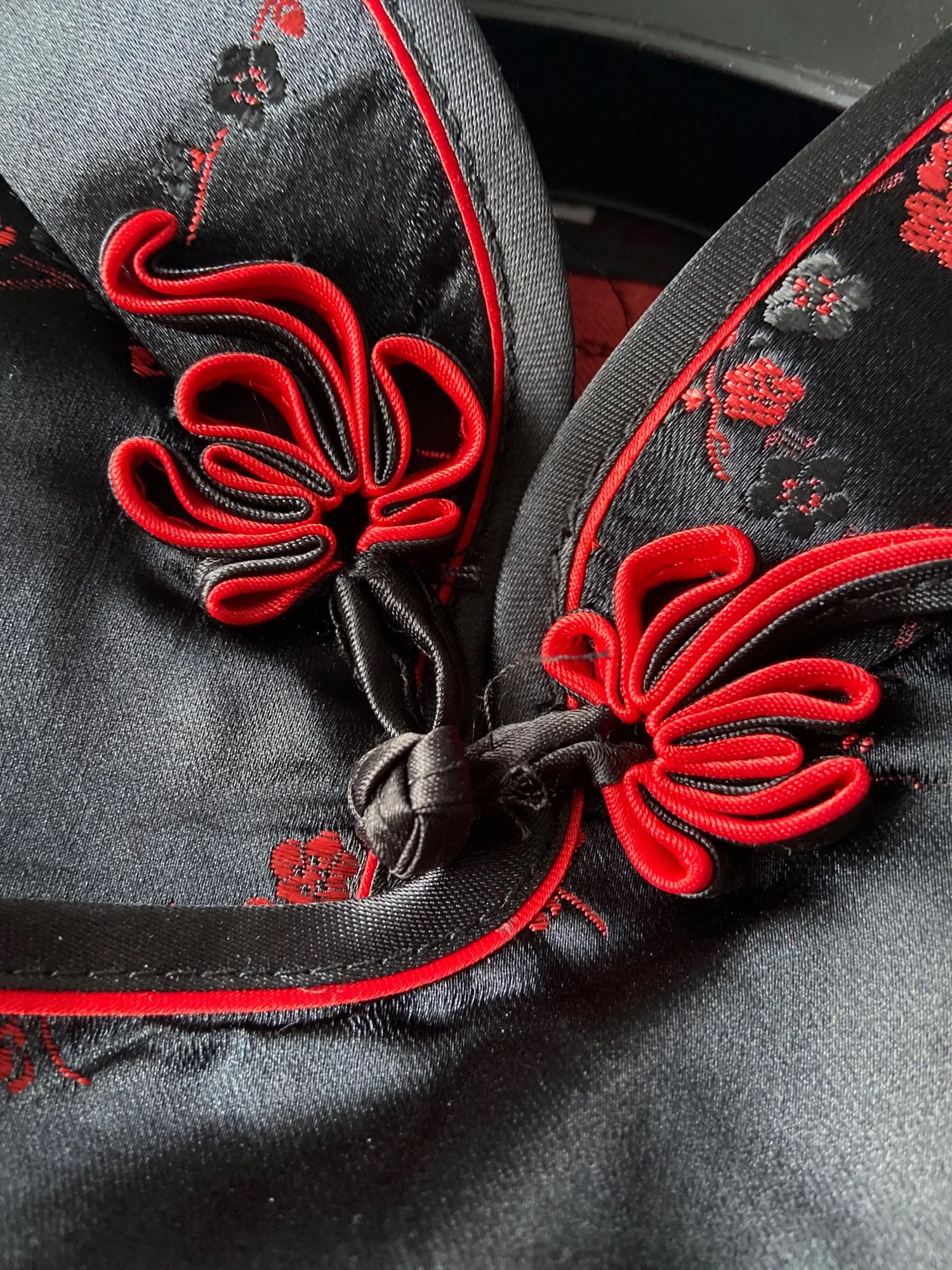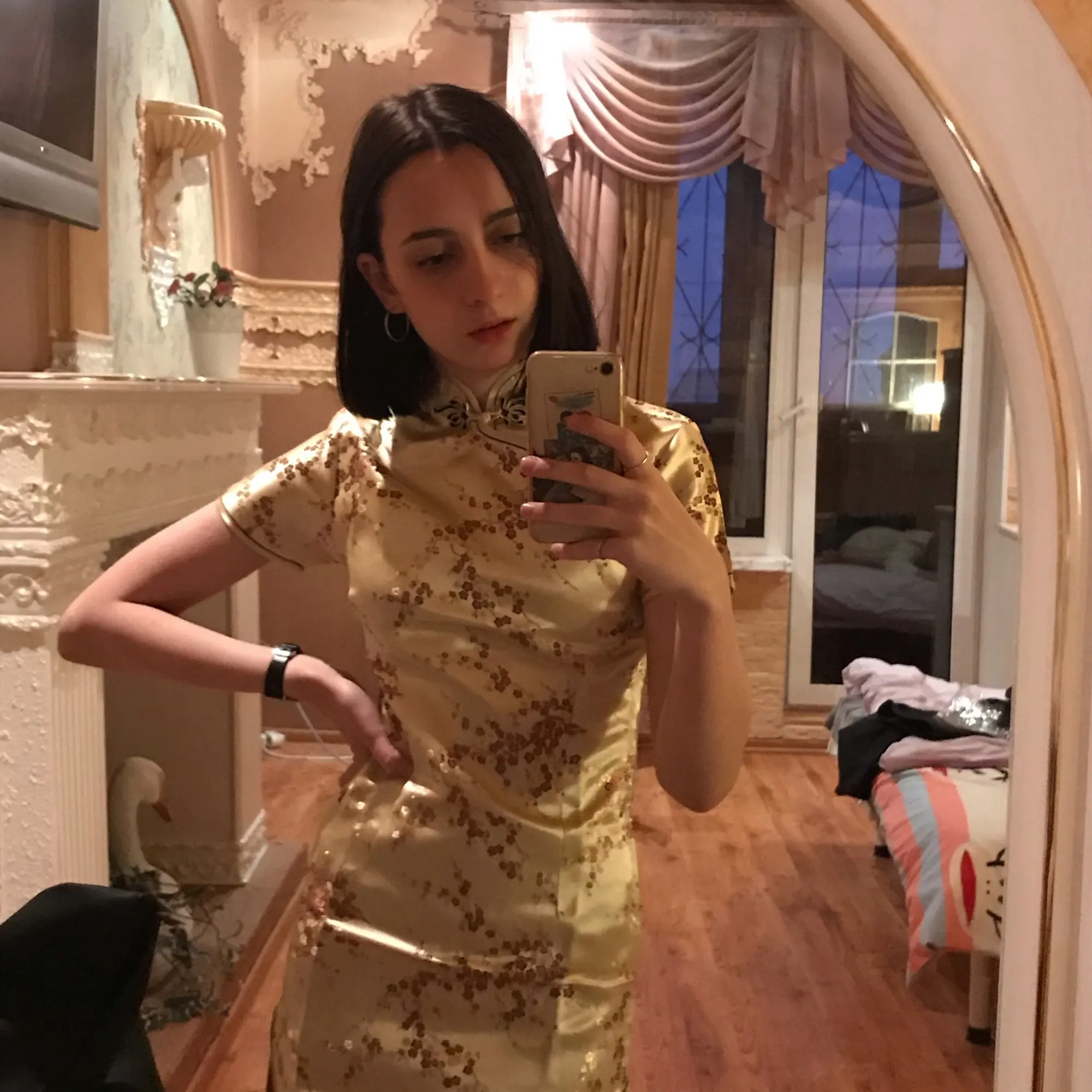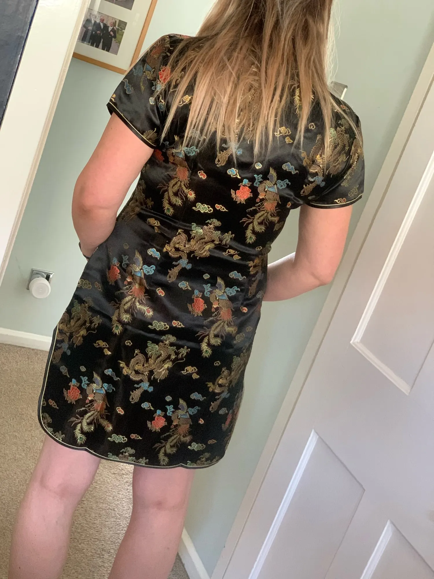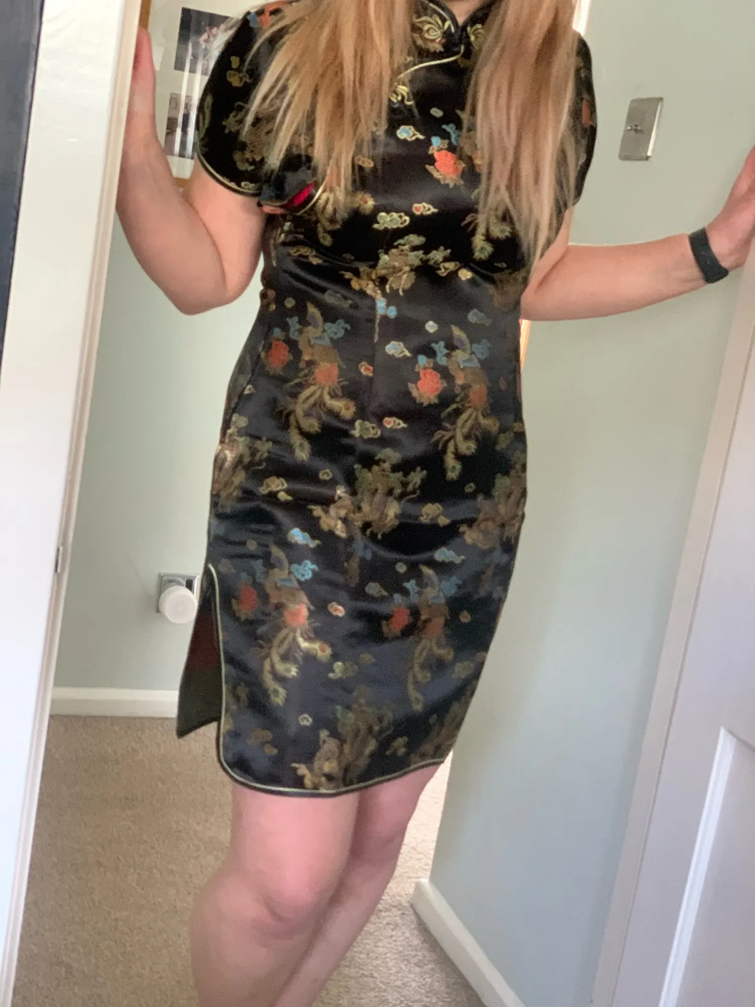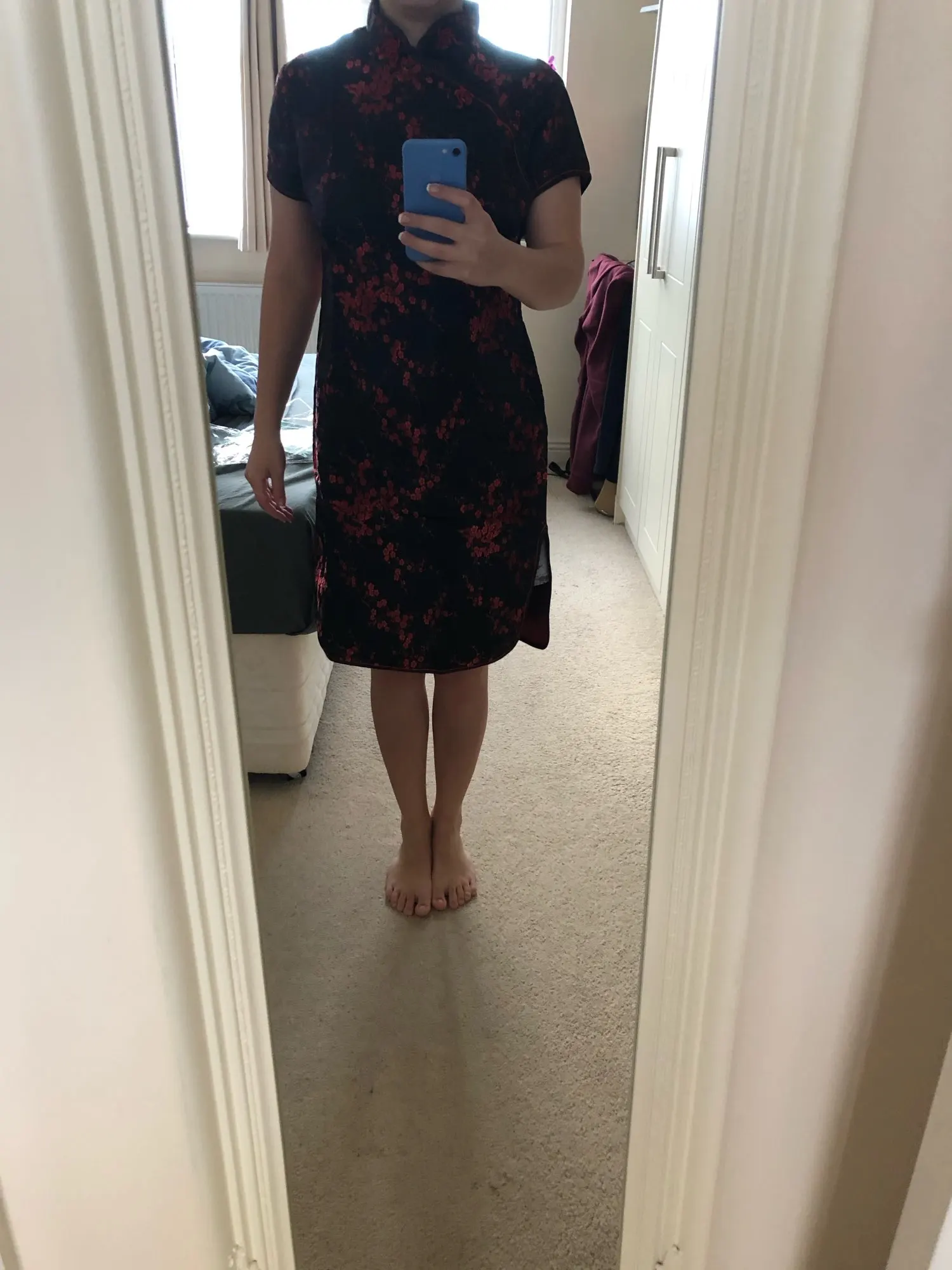 По размеру на мои ОГ 88 ОБ 94 ОТ 78 подошёл размер L (беру обычно M). При этом в талии и в бёдрах все село хорошо, а вот на спине скорее всего выкройку неправильно сшили (торчит материал). Видно что пришивали замок, кнопочки на быструю руку. Но смотрится хорошо, и за такую цену очень круто(721р) Выбрала к китайскому нг именно красный ципао. Доставка меньше 20 дней