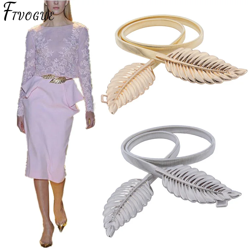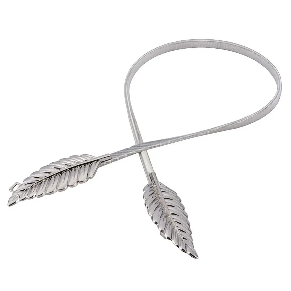 style 1New Fashionable Women Metal Leaves Elastic Waist Dress Belt Strap