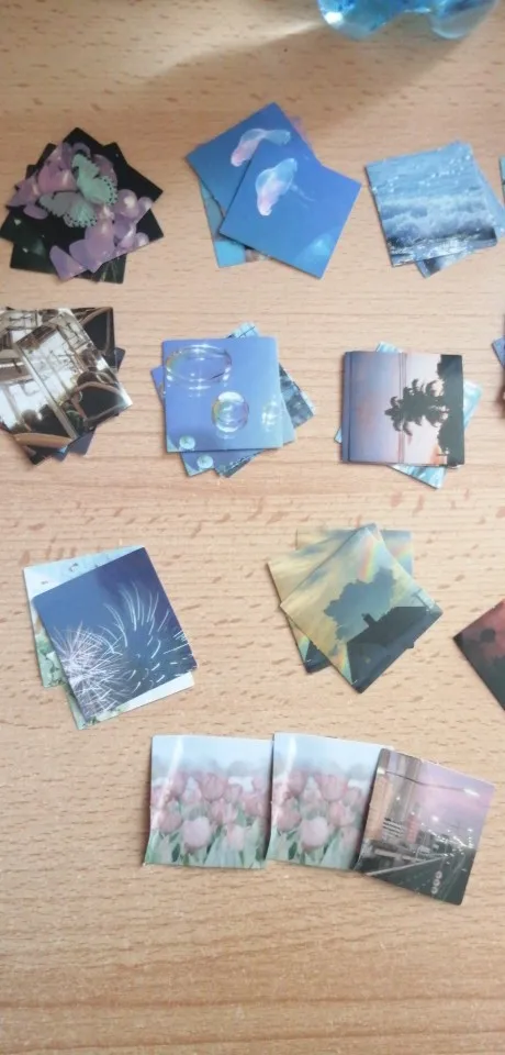 Изображения очень красивые, но у них нет клея сзади, поэтому наклейки нет (их можно приклеить другими продуктами). И они меньше, чем я ожидал, хотя это удивляет меня навсегда. Цвета я ожидал, что они будут более насыщенными, но в целом продукт довольно хорош по сравнению с ценой.