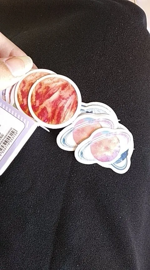 Наклейки действительно очень красивые, даже если они меньше, чем я ожидал. Но это не плохо, так как я намерен их в своем журнале пули. Действительно здорово, я в восторге!