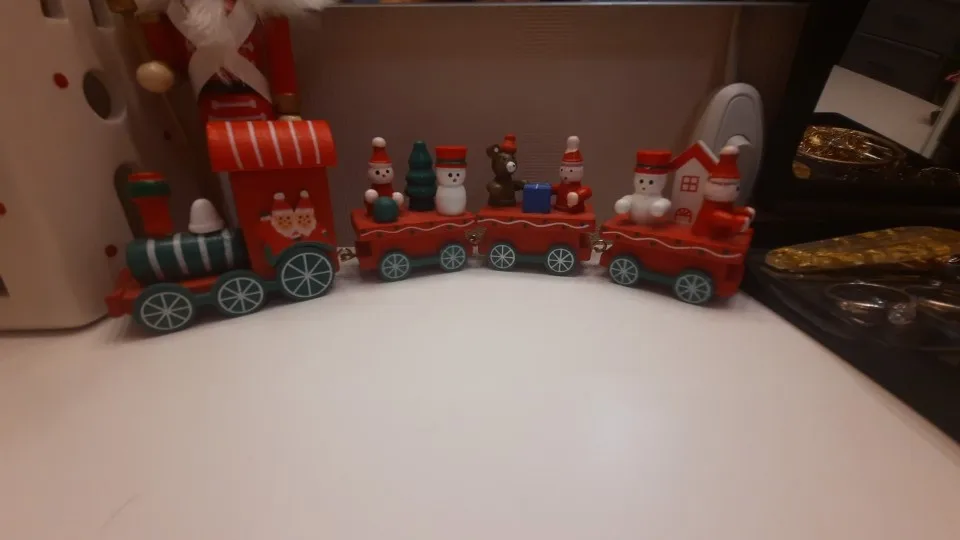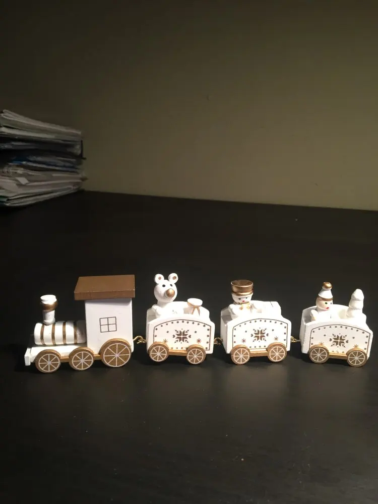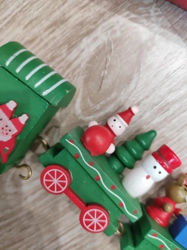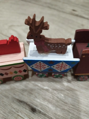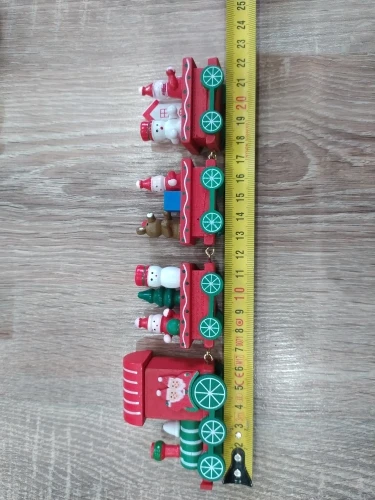 Товар пришел, поровозик симпатичный, сделан из дерева не скажу что качественно, очень хрупкое дерево, ребёнок поиграл и сломалось ухо у мишки, а так для украшения ёлки самое то,