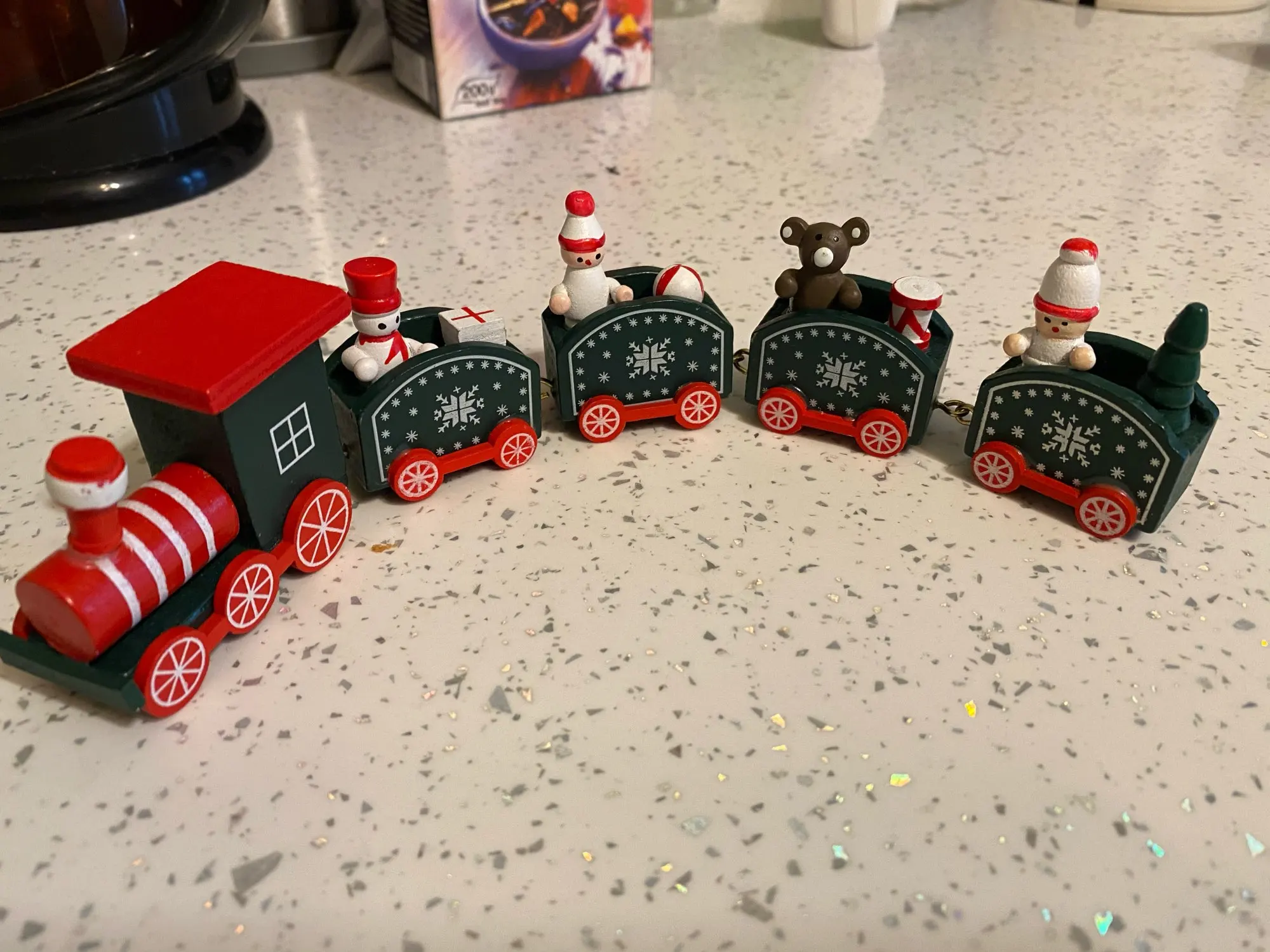 Отличные деревянные новогодние паровозики! Сделаны очень хорошо! В комплекте идёт один паровозик, я заказала два (на фото у меня два заказа). Покупала на подарок к НГ для малышей, думаю, им понравится Советую приглядеться к ним на распродаже 11.11! Цена на момент заказа - 248 руб. за один комплект.