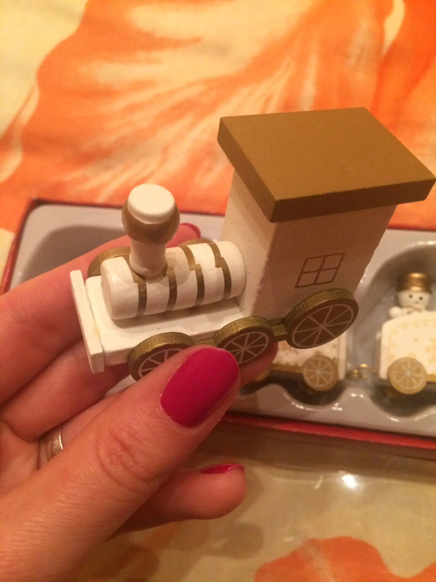 Заказала 8.12, получила 25.12, паровозик был упакован в пластиковую коробочку. Есть небольшие потёртости, смазанная краска и немного клея, но лично для меня это не критично. Для новогоднего декора отличнейший вариант. Заказом довольна.