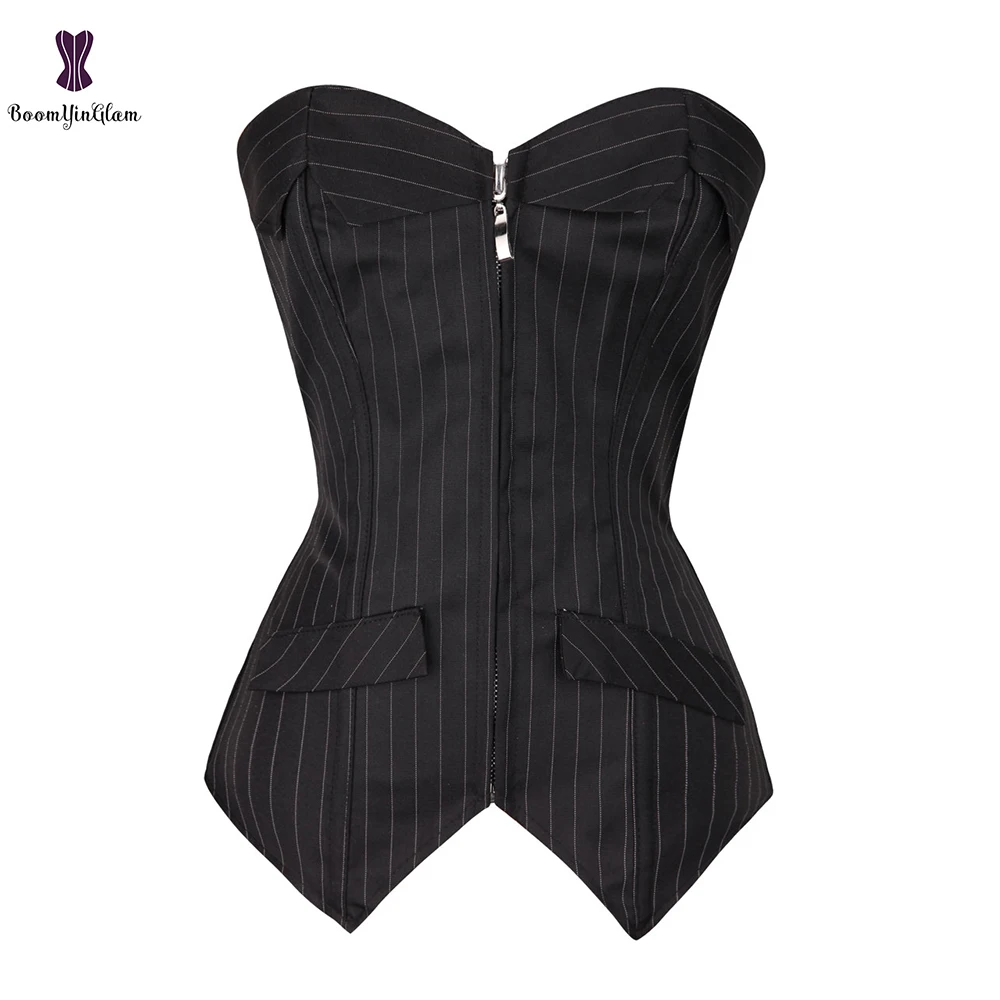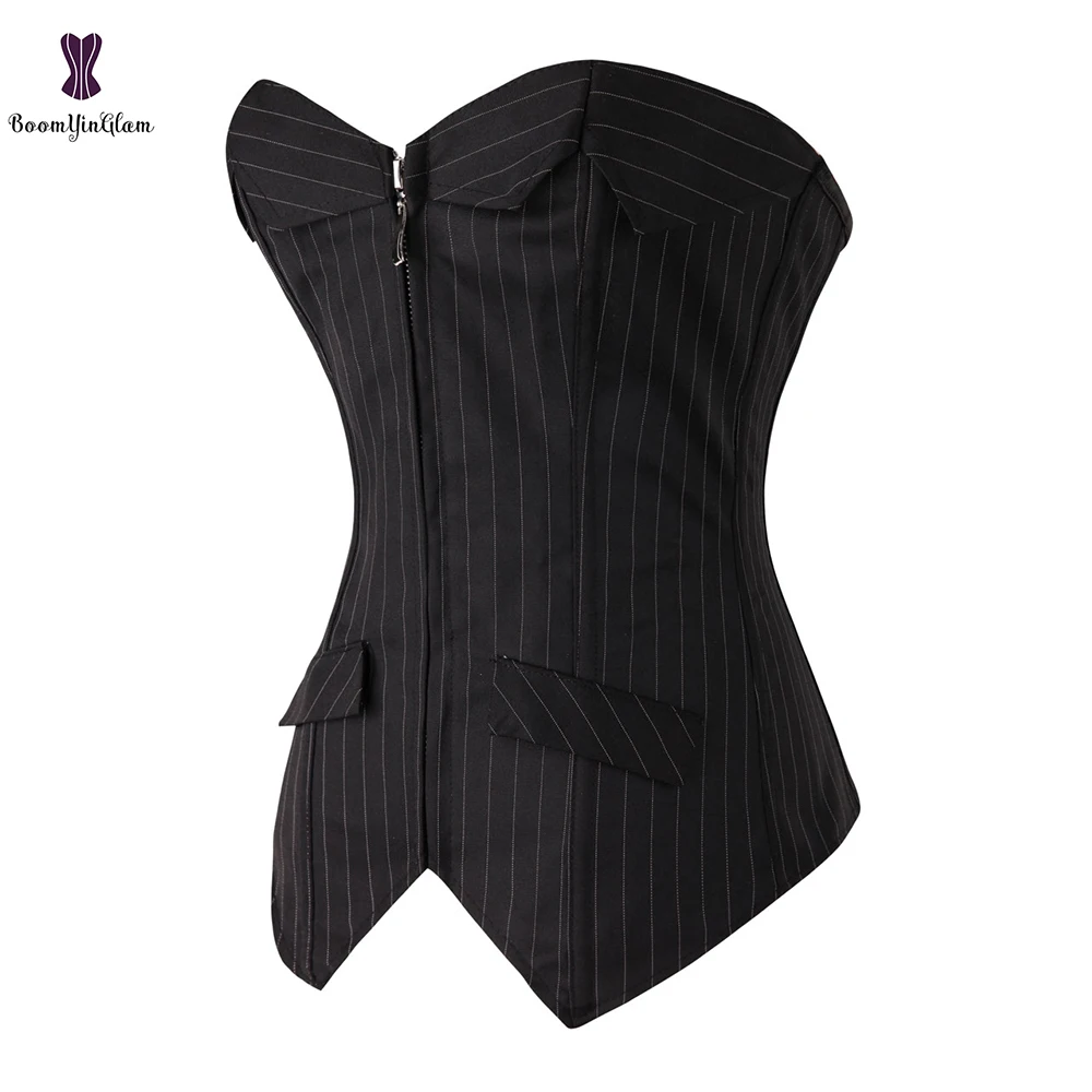 Комплект из 3 предметов, пикантный корсет из ткани в тонкую полоску Топ с баской и мини-юбка на молнии спереди, нарядное платье, костюм для вечерние НКИ 801 #