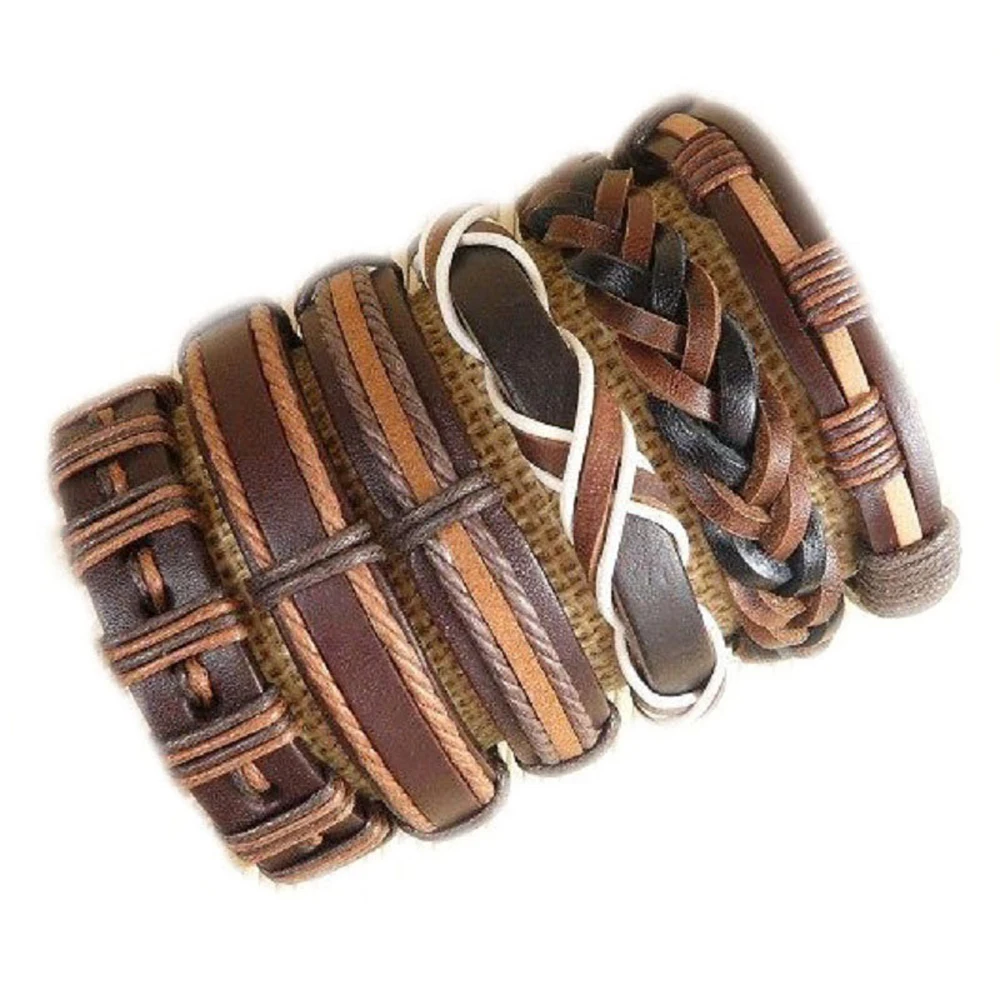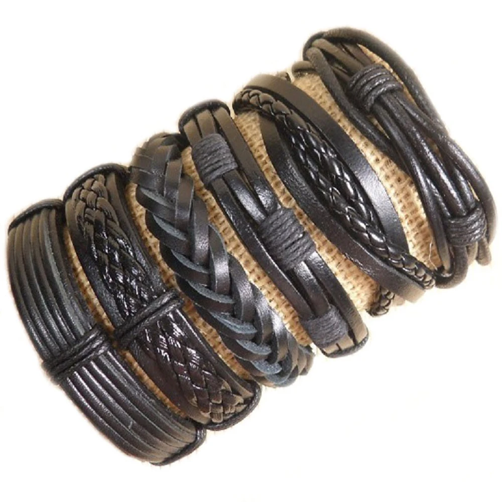 6 шт. или 6 шт., мужские браслеты из кожи в стиле панк