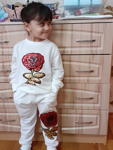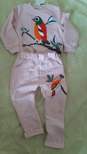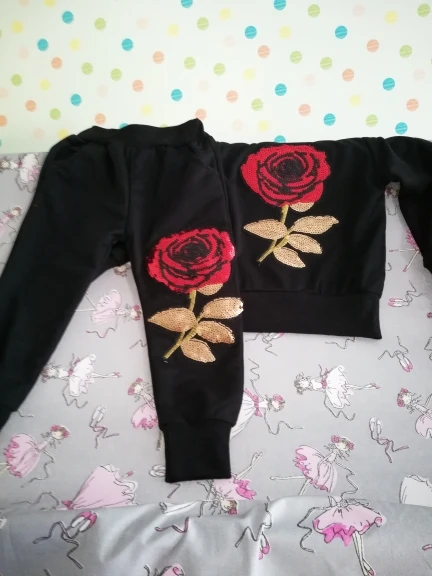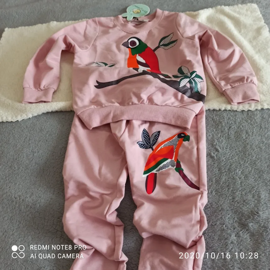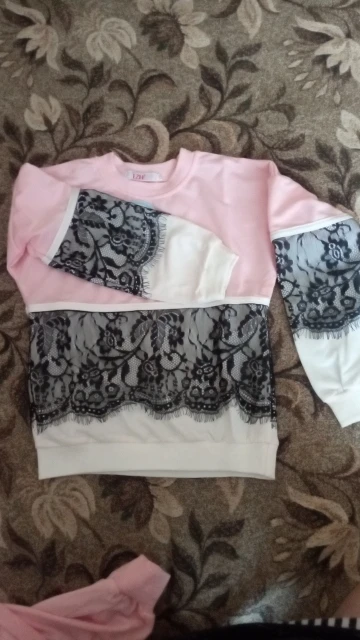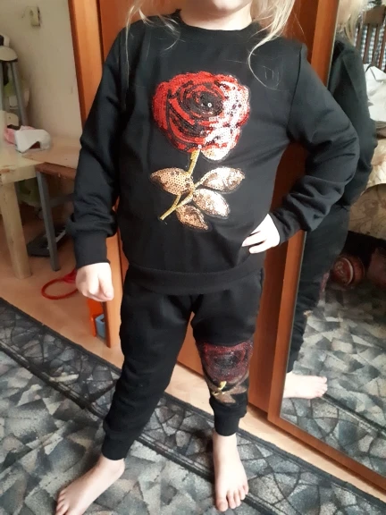 Очень понравился костюм, как на картинке, пришел быстро, достался на распродаже за 300р,вообще огонь,написан размер 110,но думаю 104 примерно, приложила к кофточке другой и вот рукава одинаковые, сама кофта короче, еще не одевали, если что дополню, а так все отлично