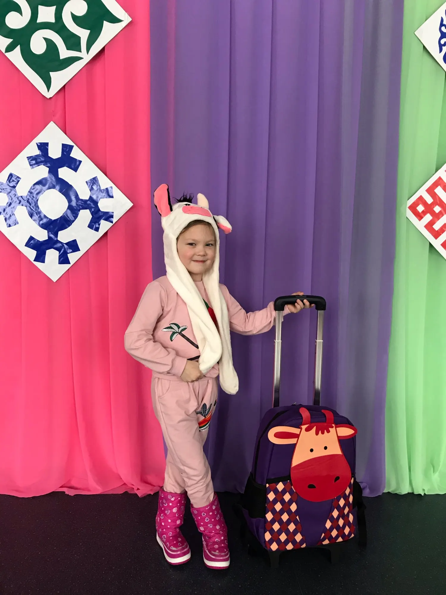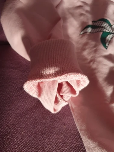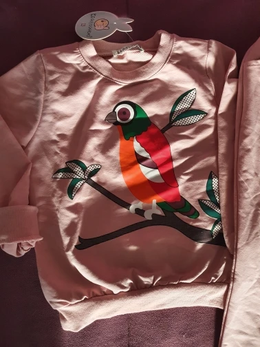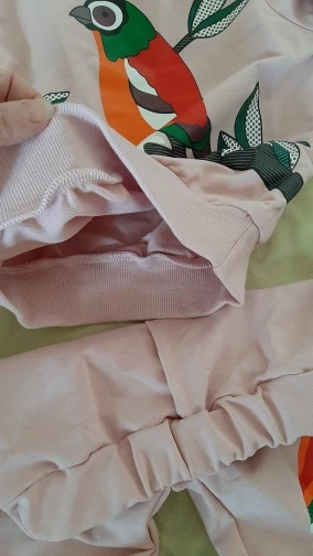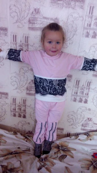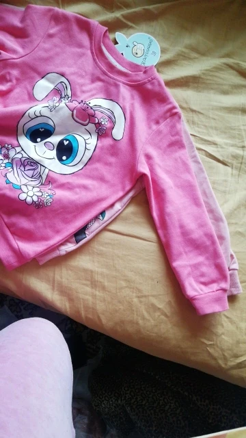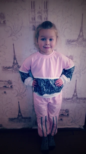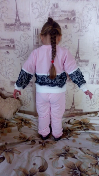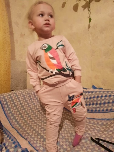 Костюмчик понравился. Я брала на подарок, поэтому не могу сказать, насколько точны размеры. Штанишки скорее всего придётся загибать. Материал не сильно тонкий, но и не утеплённый. На момент покупки стоил 411 рублей. На моих фото цвет немного исказился. В реальности он бледно-розовый