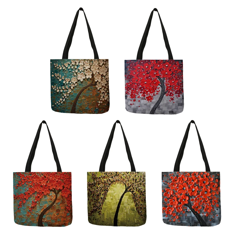 Сумка женская многоразовая из эко-льняной ткани с цветами