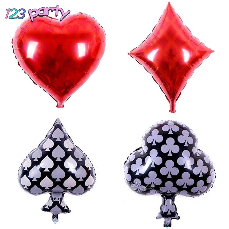 Клубы, бриллианты, пики, сердца, фольгированные воздушные шары, карты для казино, игральные кости, стандартные карты для покера