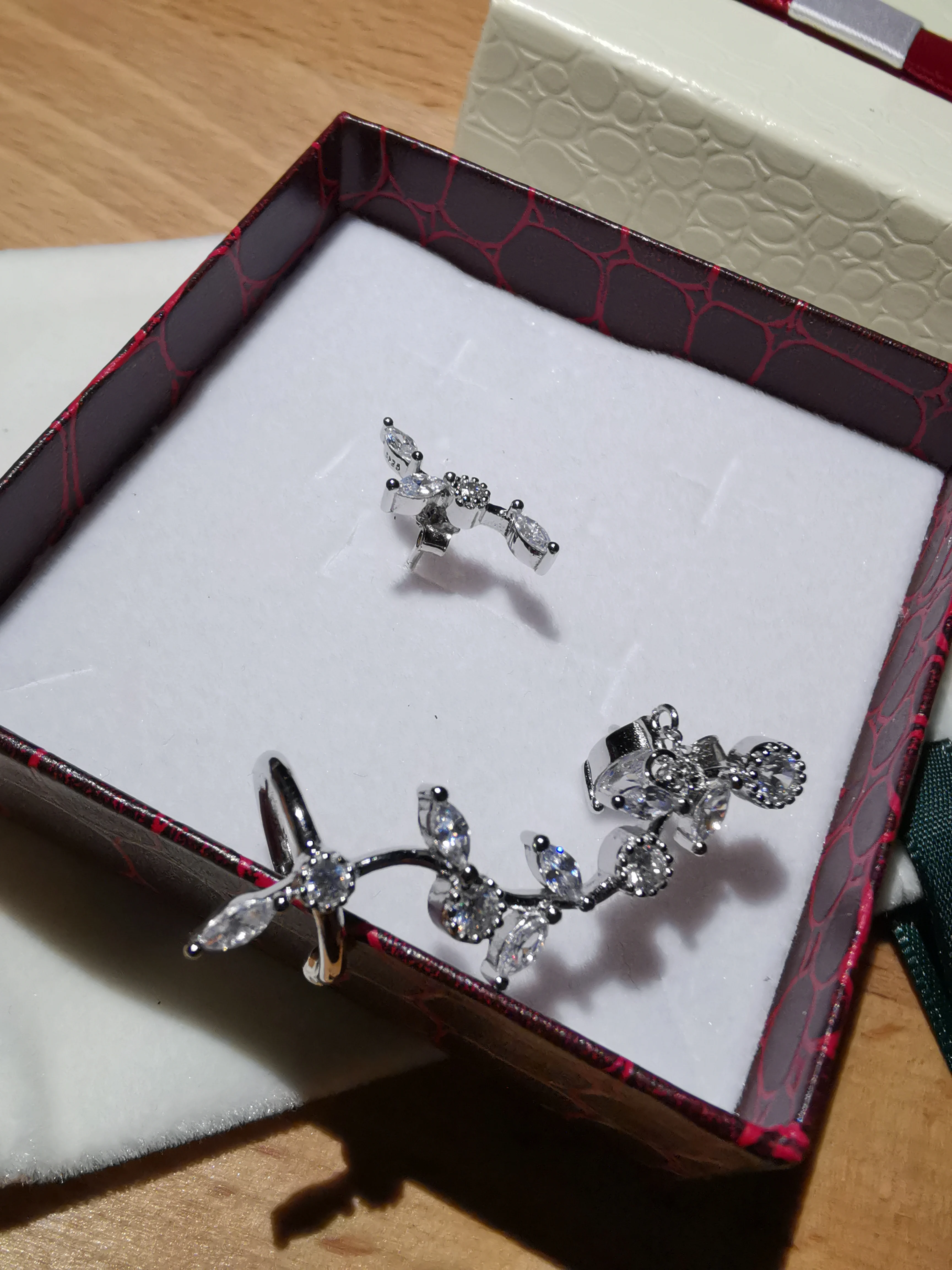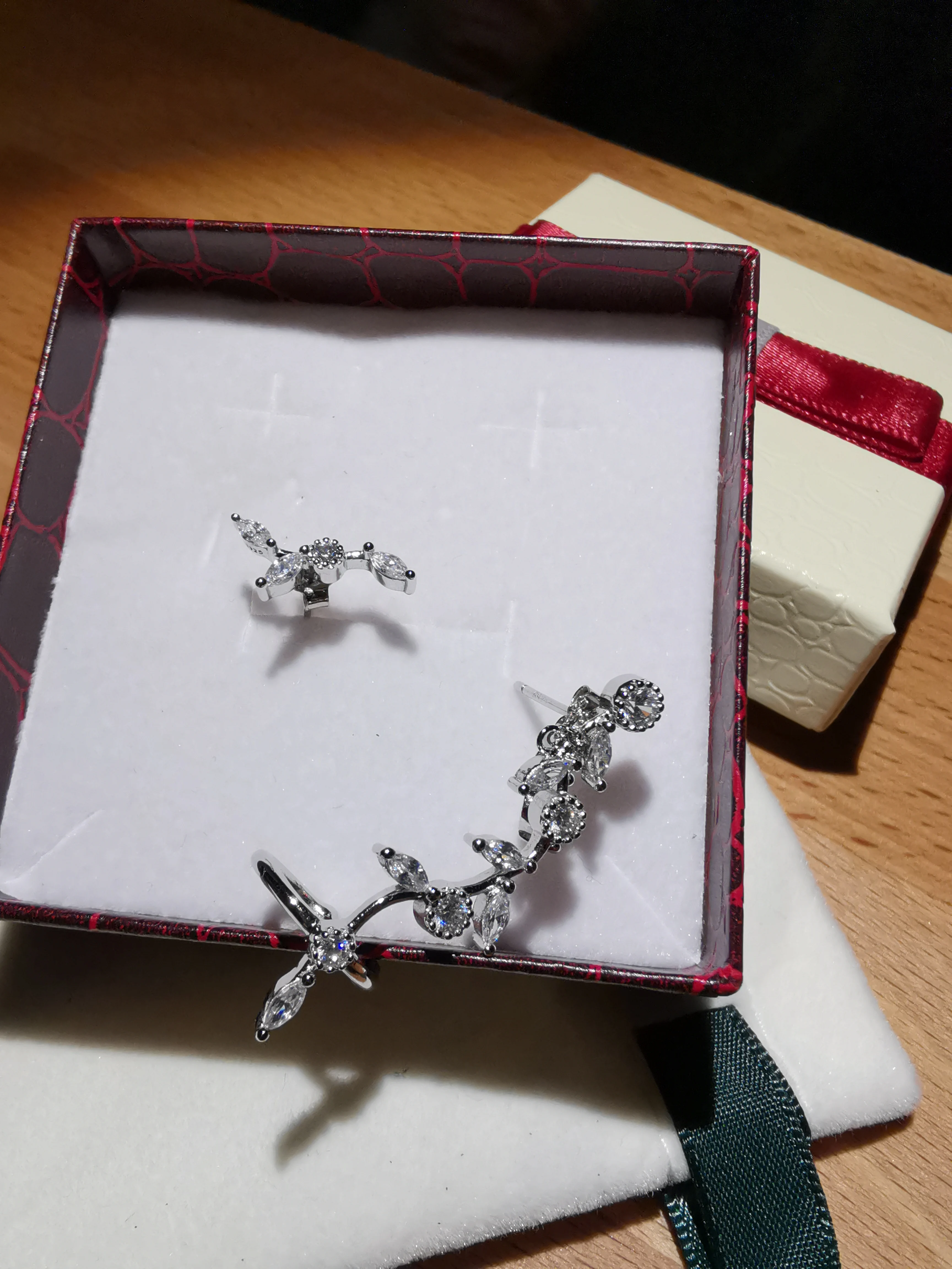 Серёжки мне понравились. Они хорошего качества. Камушки все на месте и красиво переливаются на свету. Проба также стоит. Но есть одно "но". Эти серёжки я носила целый день и у меня заболело ушко в том месте, где большая серёжка держится вверху. Когда я её сняла, но увидела красное пятнышко от носки. Вывод такой - носить можно, но на целый день есть опасность, что будет ваше ушко болеть. Доставка в течении 3 недель. Также в подарок я получила мешочек и коробочку для увелирных украшений.