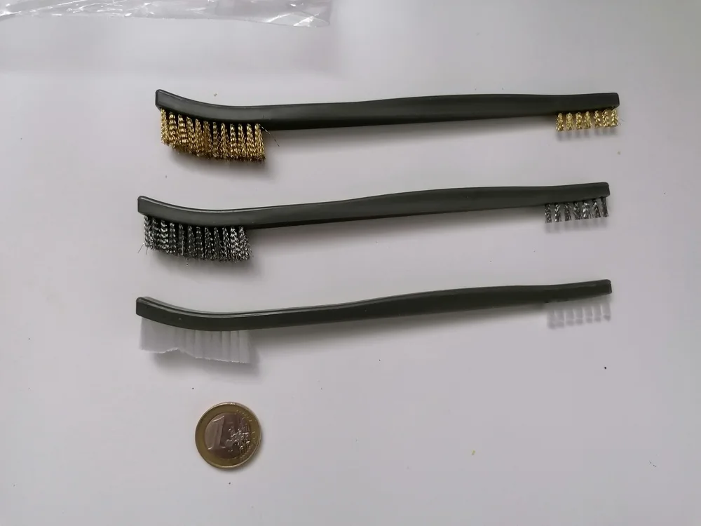 -Включает 3 типа кистей: стальная щетка/латунная щетка/нейлоновая щетка