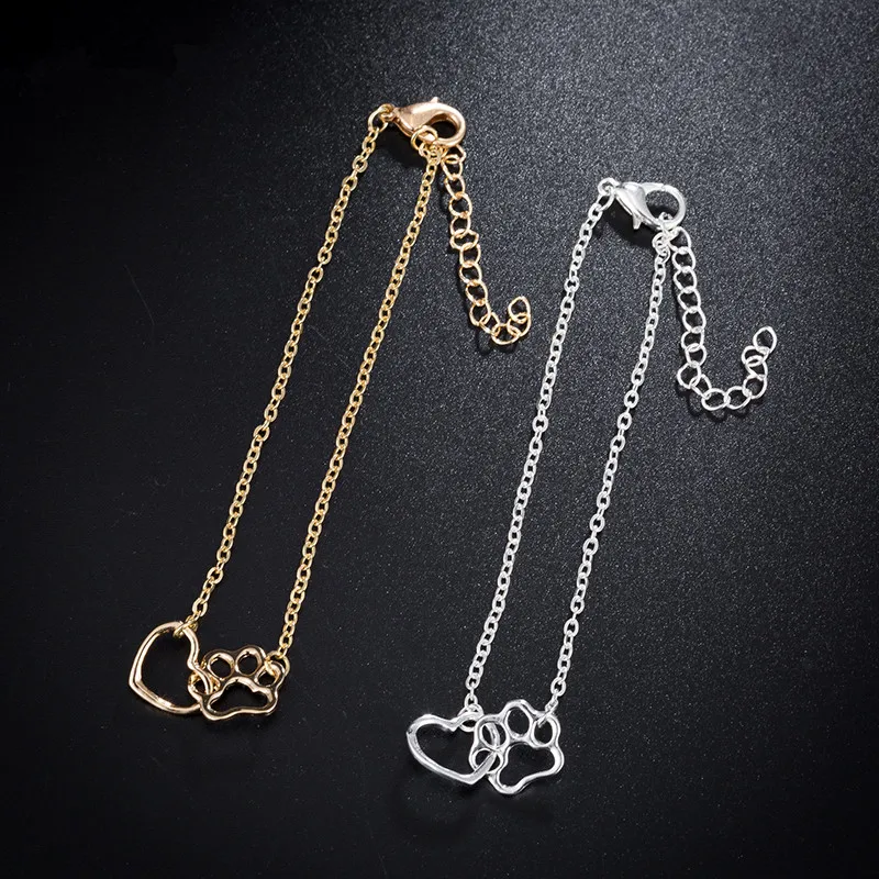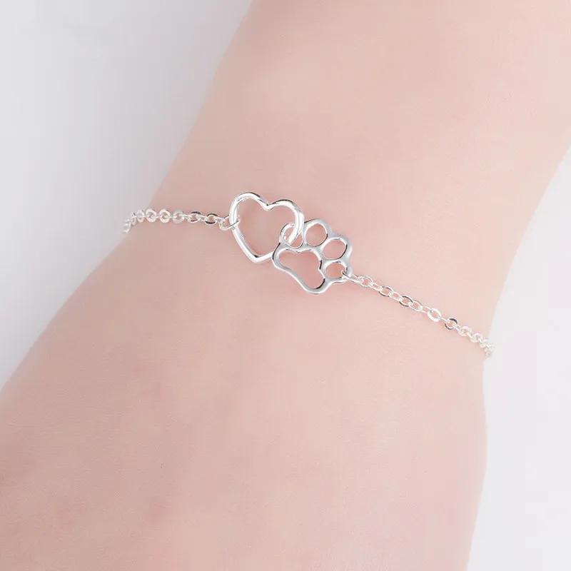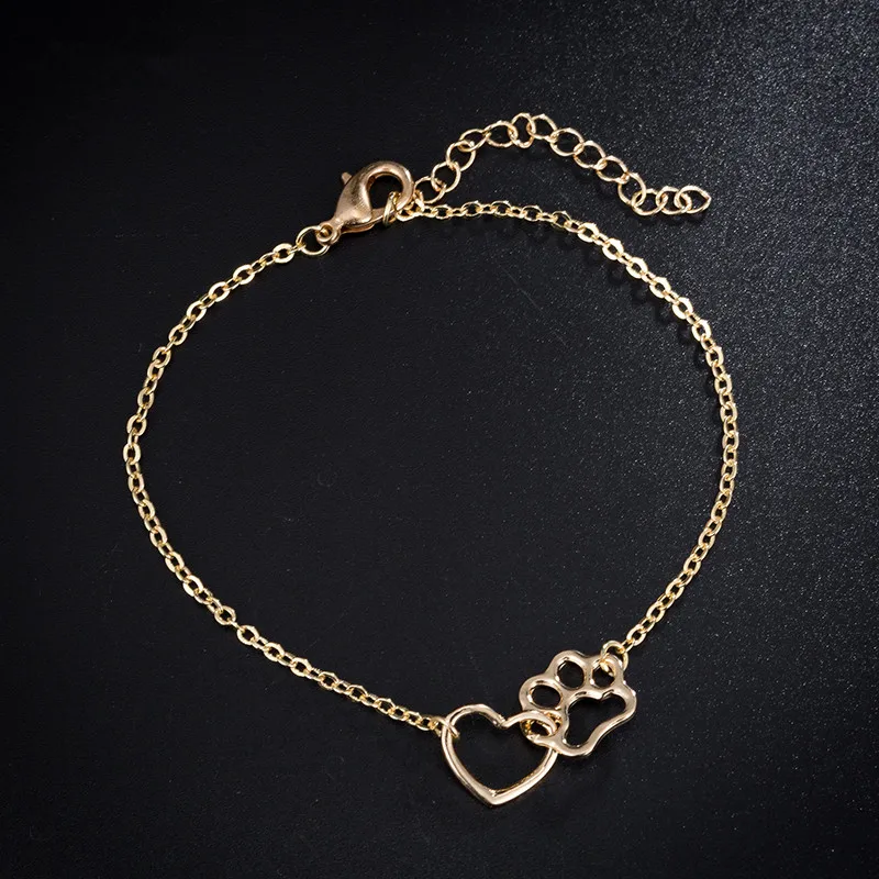 Женский полый браслет с изображением лапы, шарма с милым животным, кошачьим собакой, сердечком, браслеты, 2019