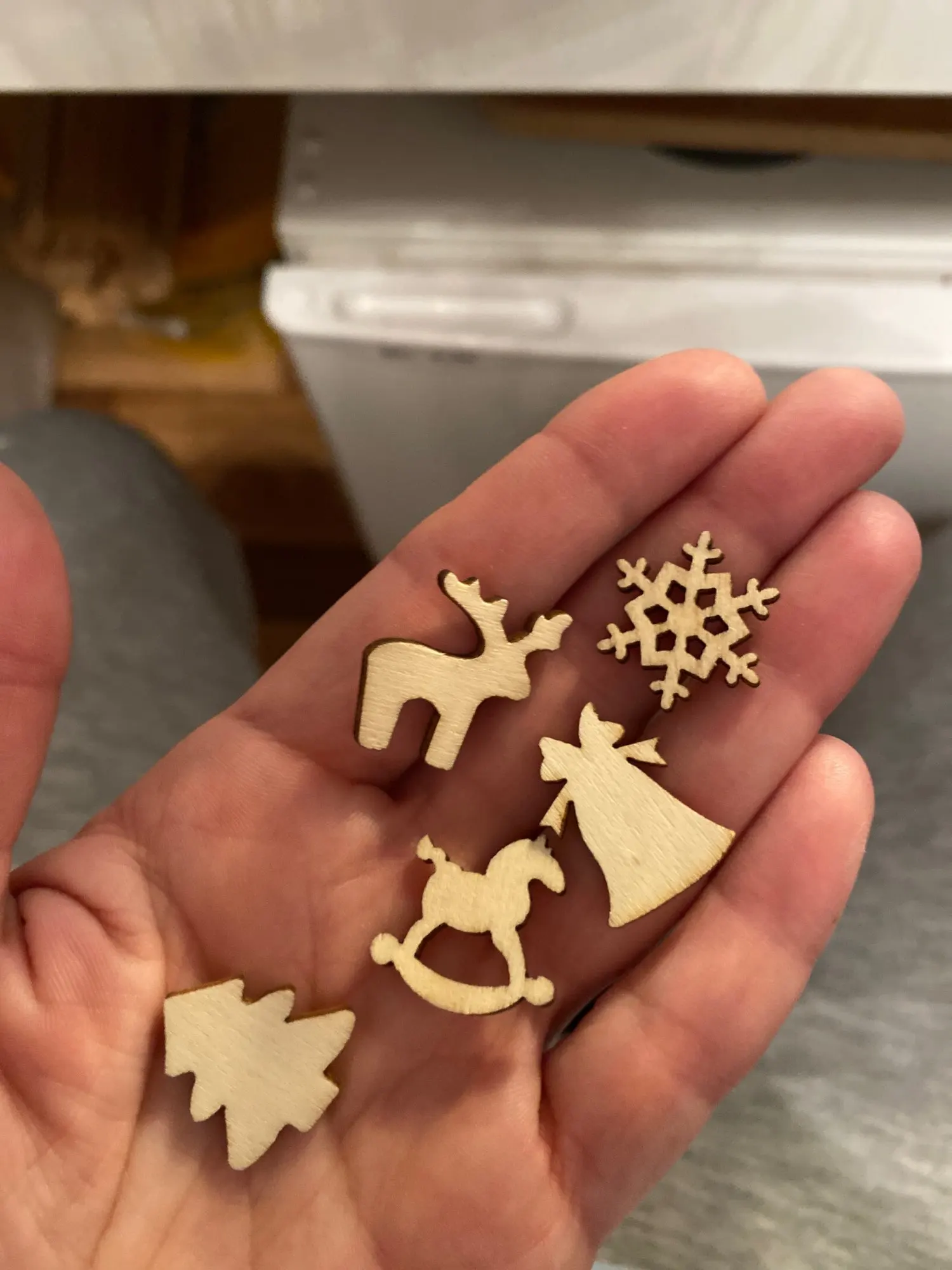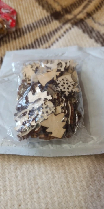 Эти маленькие вещи немного подходят для творческих людей. Вы можете склеить 2 украшения вместе и сделать одно Рождественское украшение, как я.❤② Я думаю, что у него так быстрая доставка, теперь у меня действительно красивый декор. Материал изготовлен из дерева.