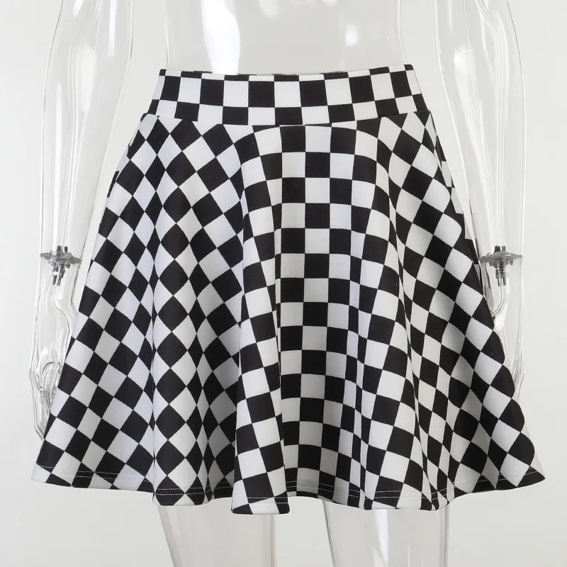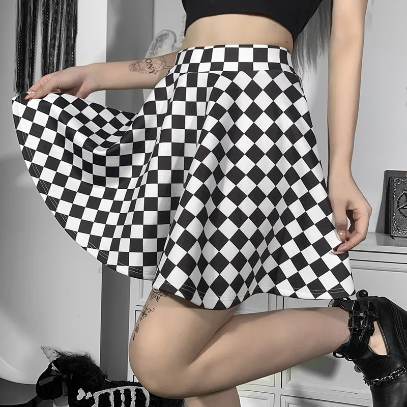 Юбка-мини женская в готическую клетку, черно-белая, с высокой талией