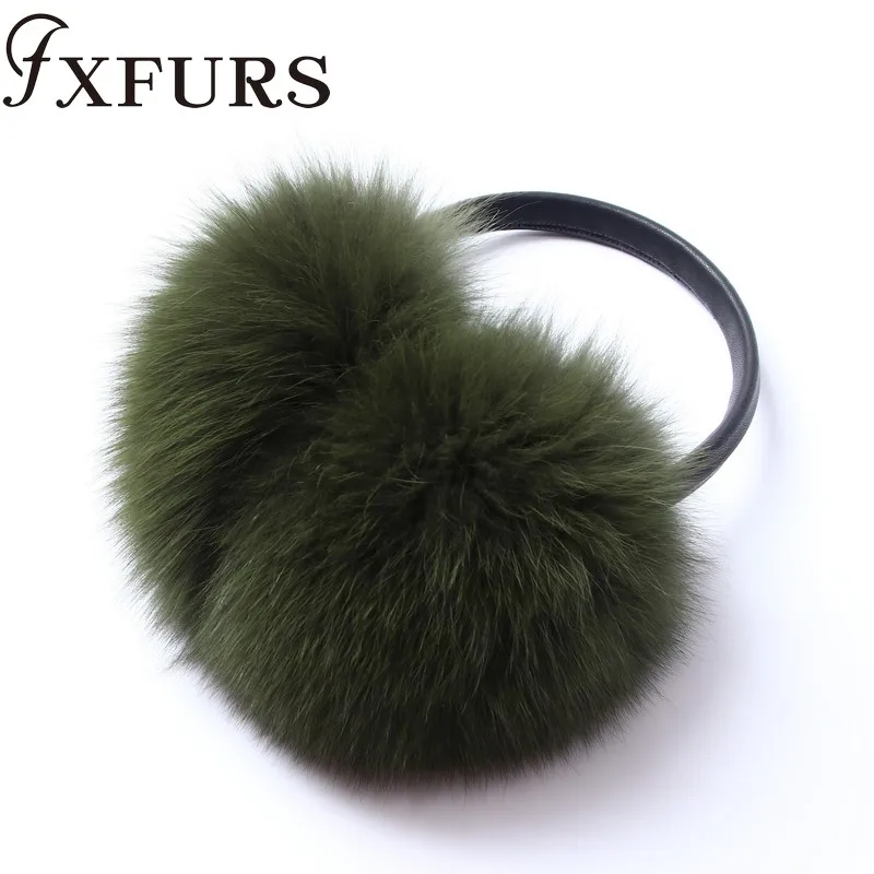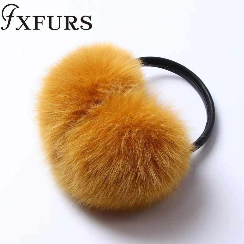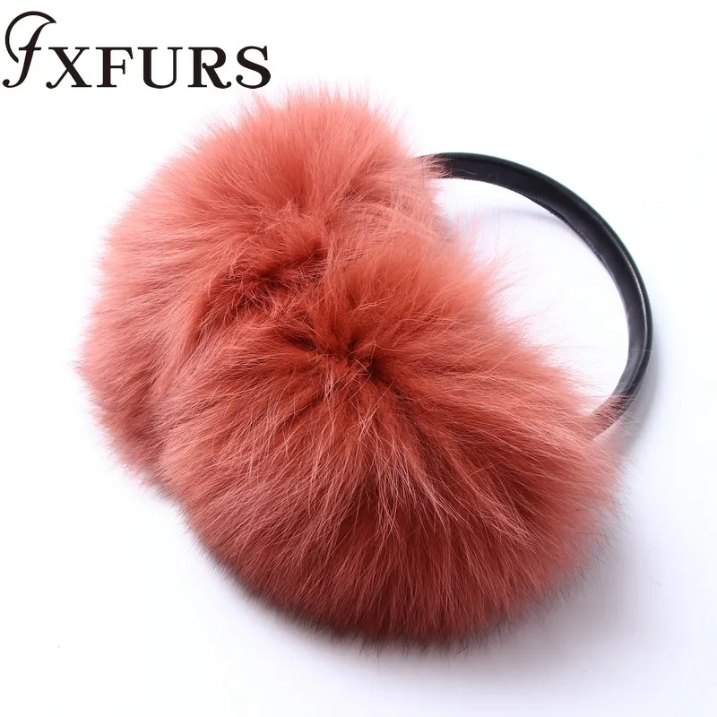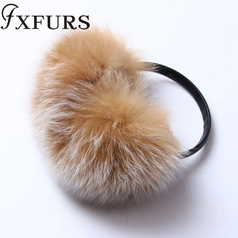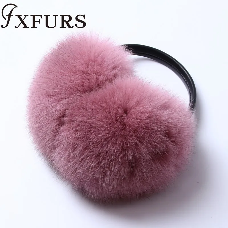 Женские меховые наушники FXFURS, модные милые большие меховые наушники из лисьего меха, теплые меховые ушанки с кожаной полкой, зимняя защита для ушей, 2020