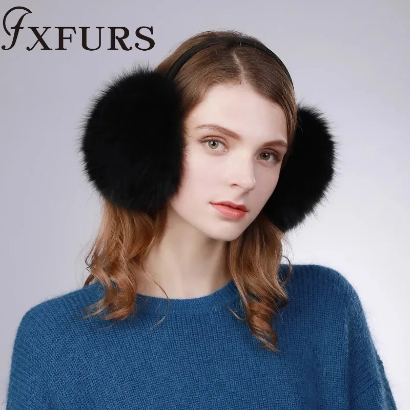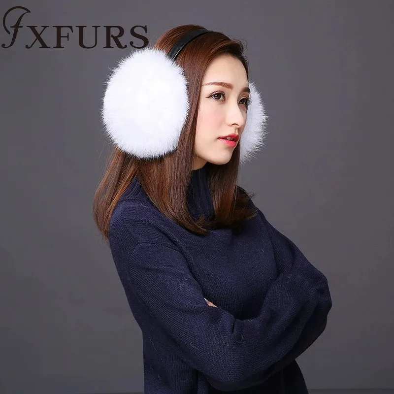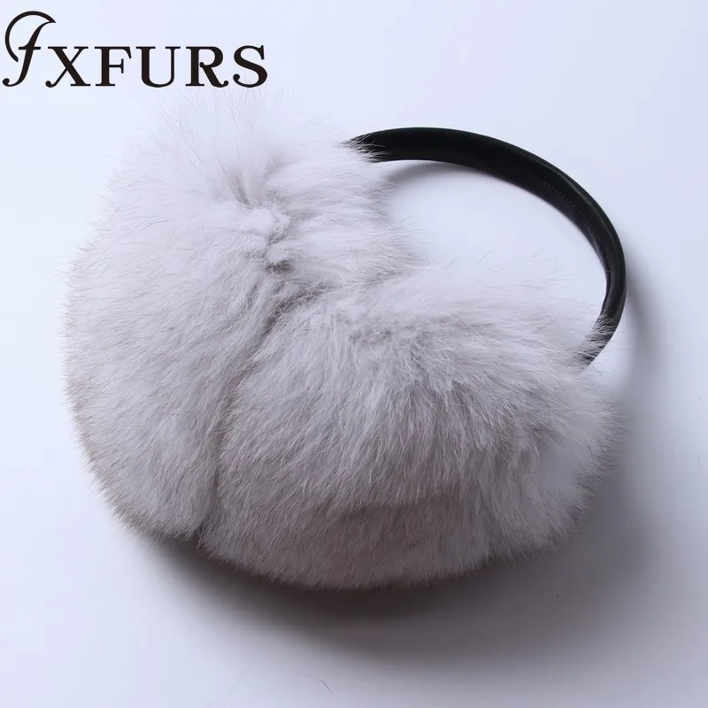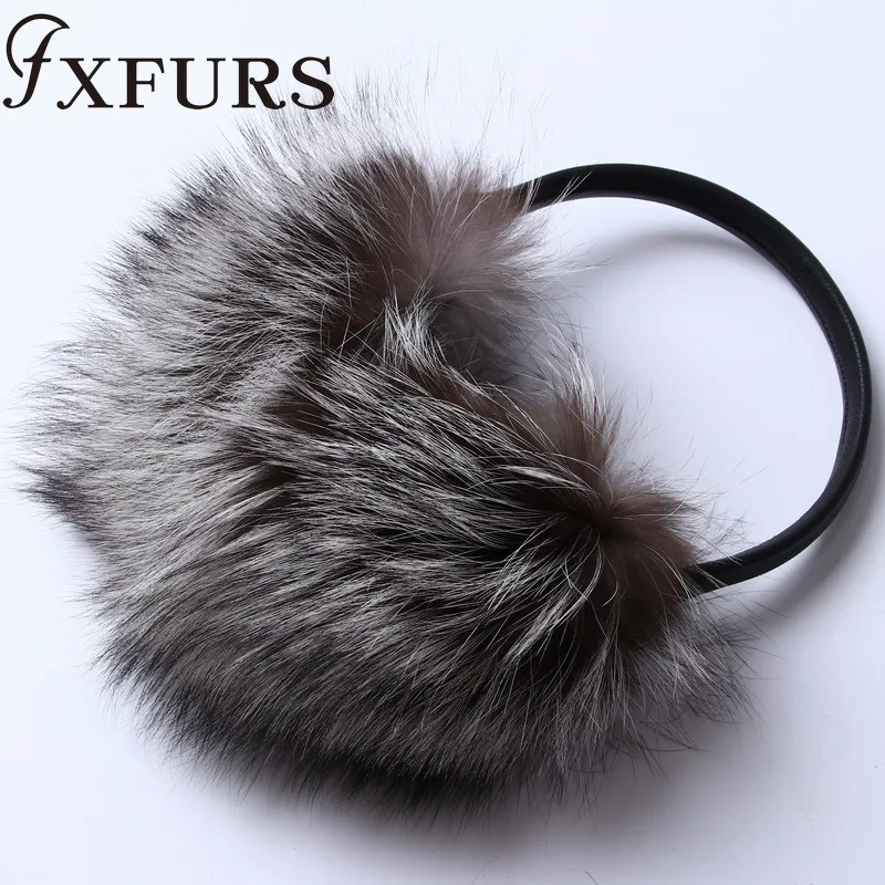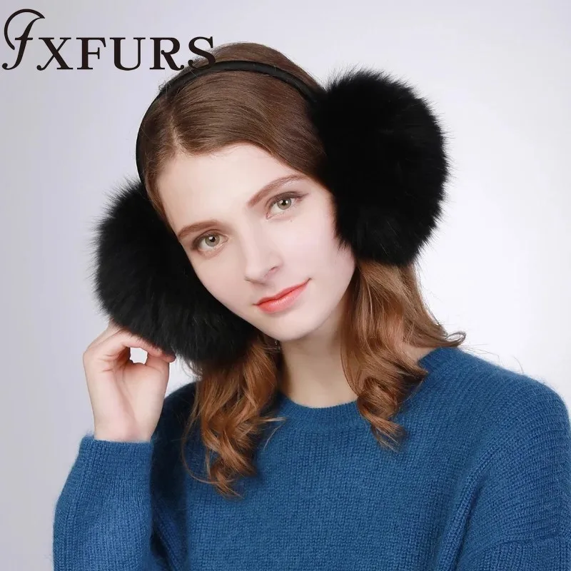 Женские меховые наушники FXFURS, модные милые большие меховые наушники из лисьего меха, теплые меховые ушанки с кожаной полкой, зимняя защита для ушей, 2020
