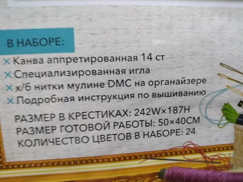 Вышивку ещё не начинала, но всё нравится! Цвета яркие, насыщенные. Доставка быстрая!