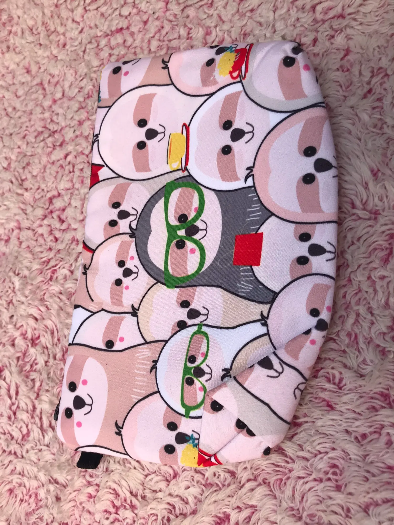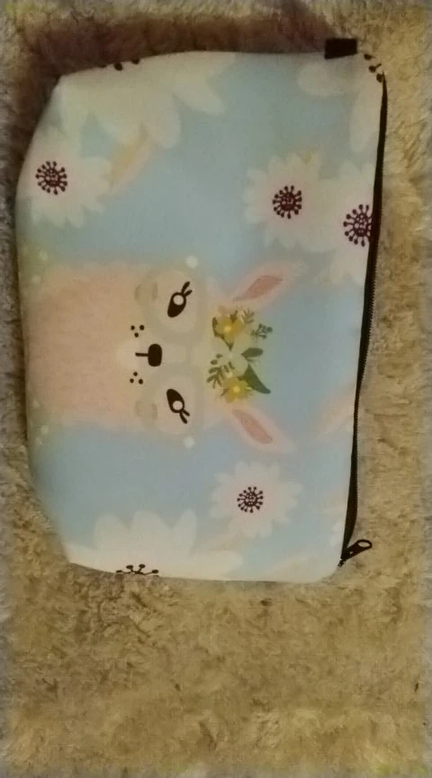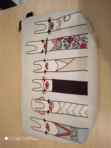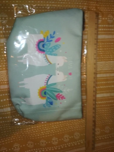 Хорошая, качественная, милая косметичка. Плотные стенки, чем-то проложены внутри. Ткань снаружи мягкая, бархатистая, будет на неё липнуть всё подряд :) По размеру небольшая, но я её и взяла под небольшие косметические кисточки. Принт - это отдельная песня! Яркий, позитивный, улыбает