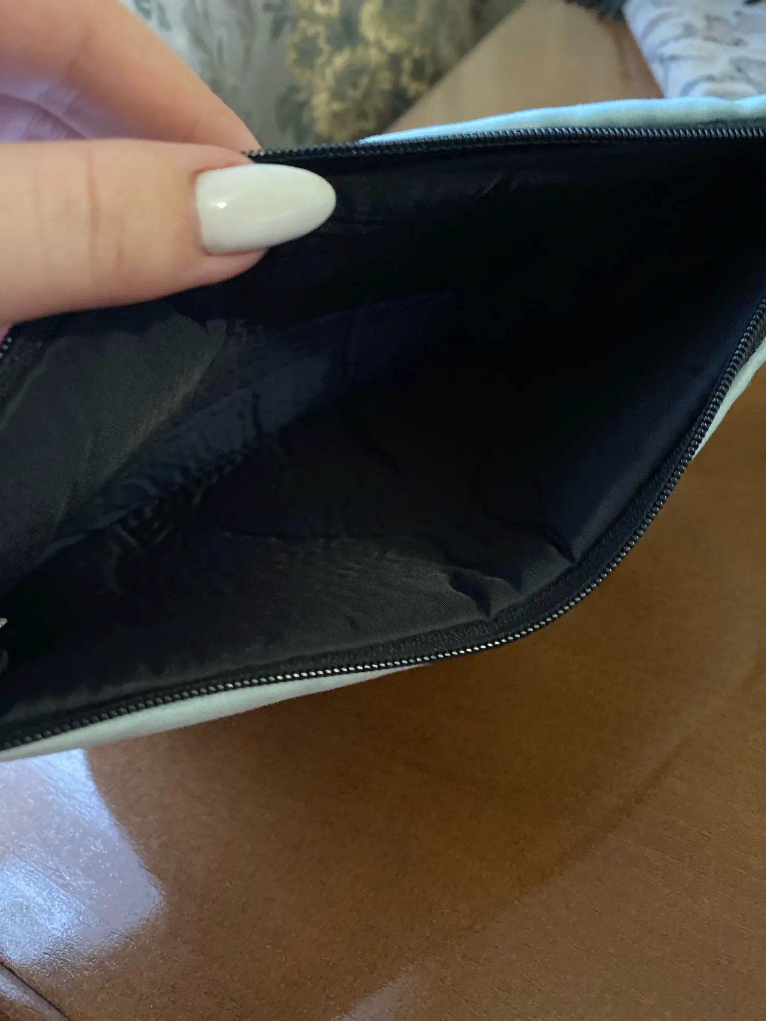 Доставка занимает некоторое время, но товар очень доволен. Отличная косметичка по цене. Хорошее качество, подкладка внутри кажется водонепроницаемой. Он также немного проложен, чтобы защитить вашу косметику от повреждений. Буду покупать у этого продавца снова. Спасибо.