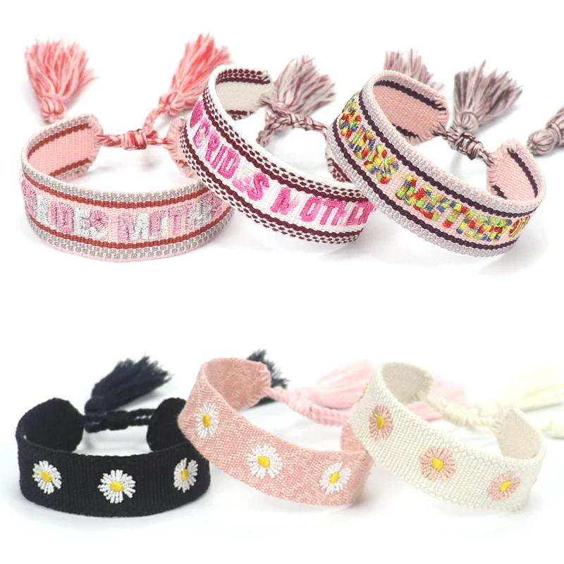 Boho вышивка хлопок браслет кисточкой браслеты друзья Femme Pulseras Mujer бразильские регулируемые браслеты
