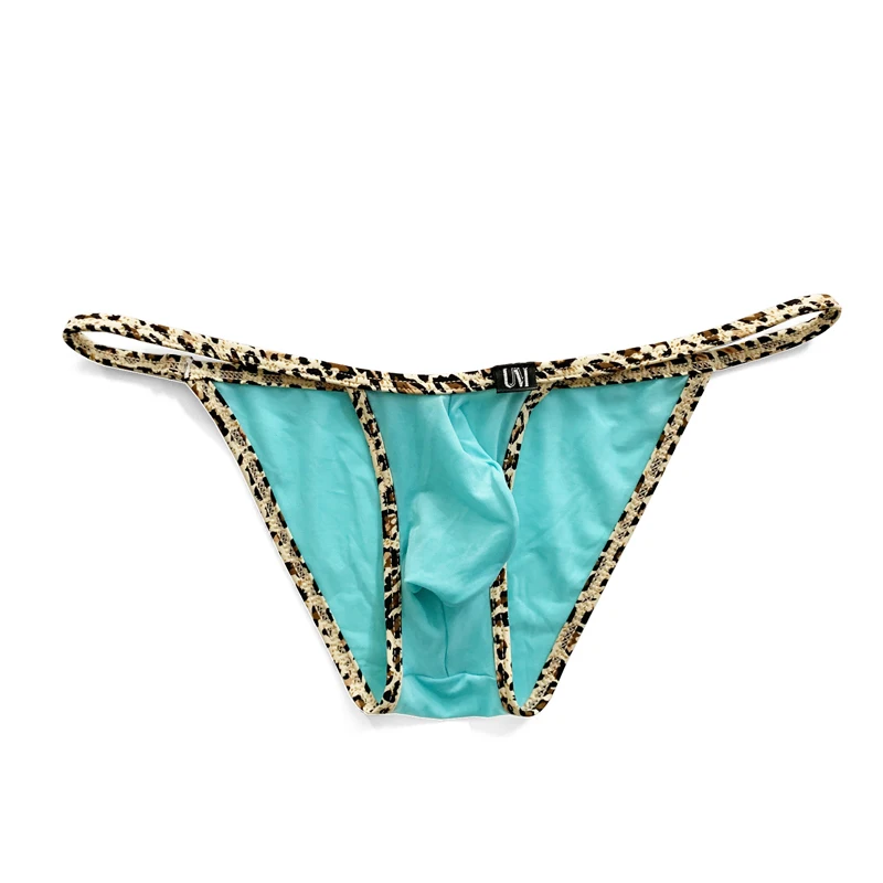 Трусы-брифы мужские из ледяного шелка, пикантное нижнее белье с леопардовыми краями, стринги, Эротические