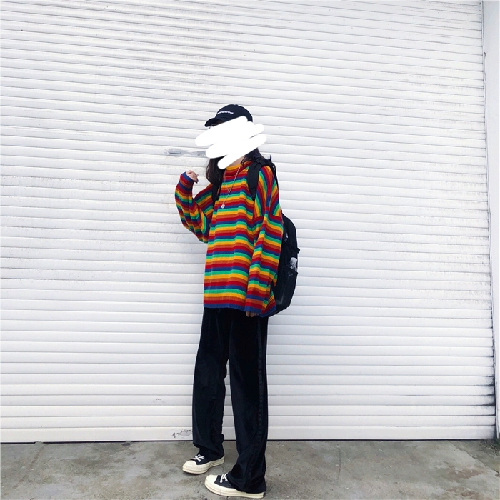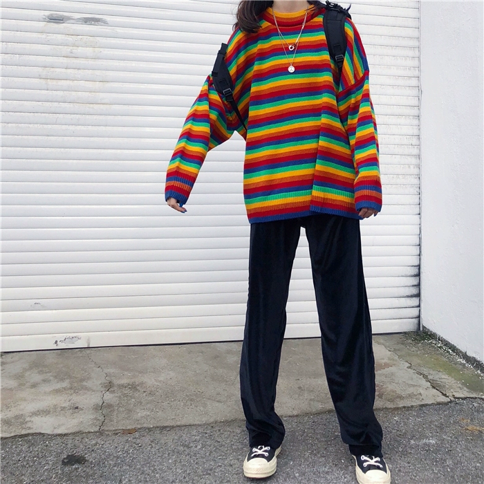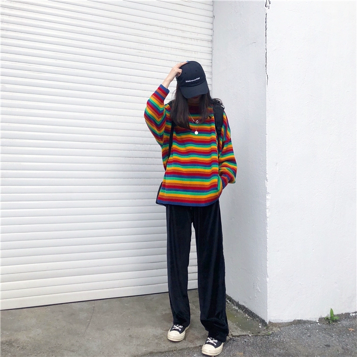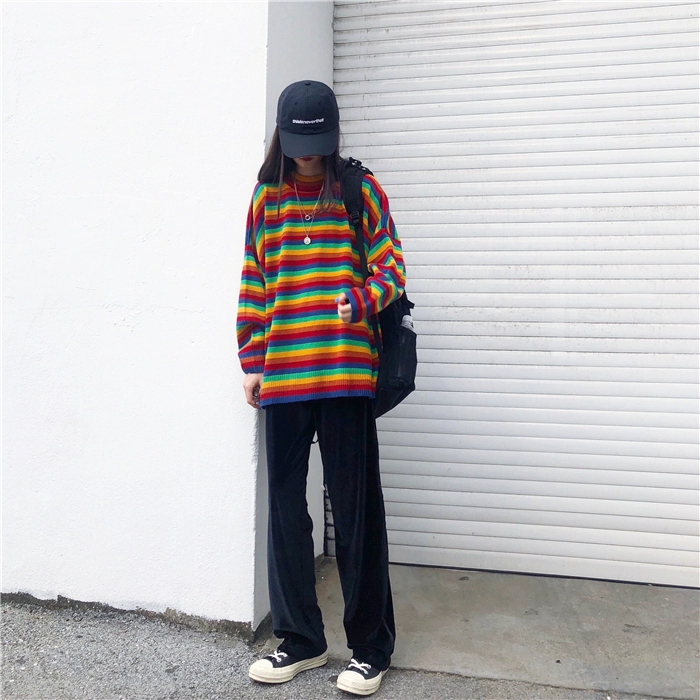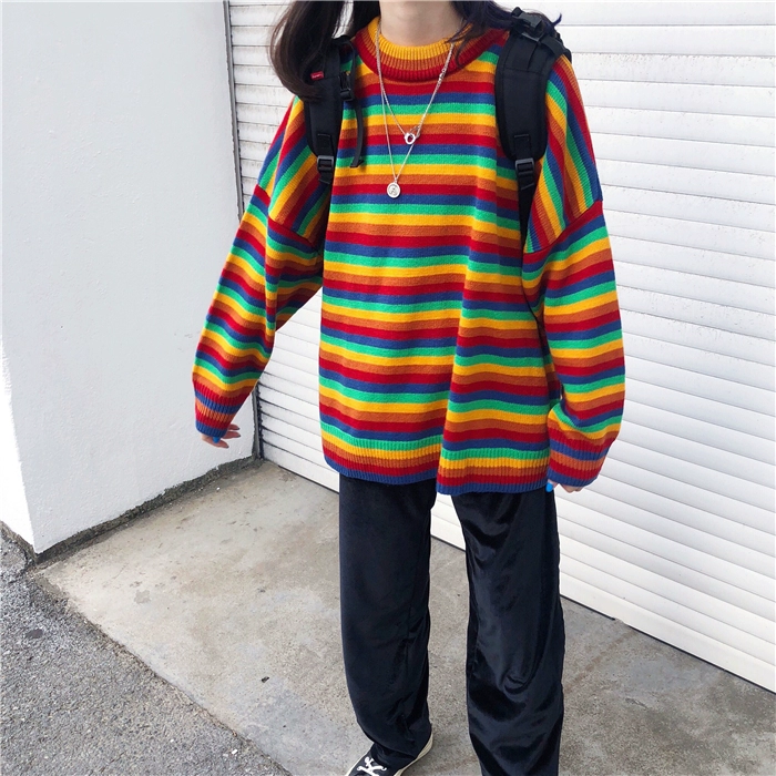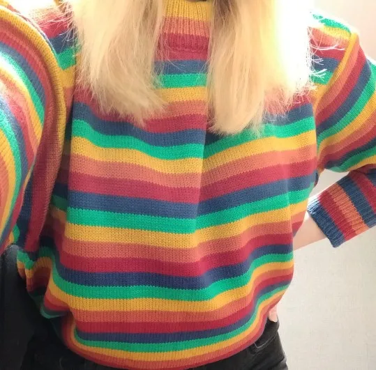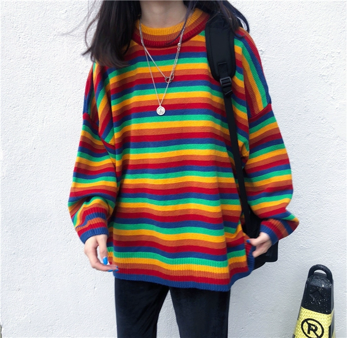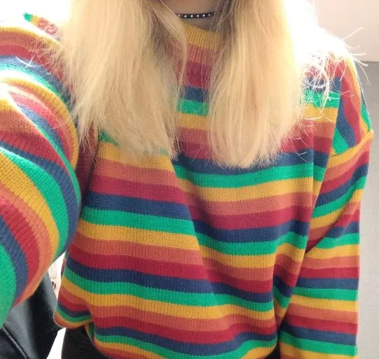 Свитер женский полосатый в стиле Харадзюку, в Корейском стиле, одежда Ulzzang